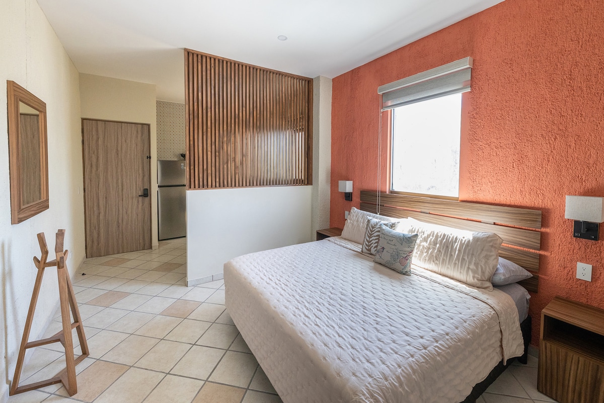 Suite Tamarindo es un departamento tipo estudio integral, ubicado en un complejo de 5 departamentos. Ubicado en un 2 piso, cuenta con una cama queen, smartTV, wifi, aire acondicionado, espacio de clóset, cocina completa, y baño de lujo completo. El complejo tiene estacionamiento cerrado. Está ubicado en un barrio muy tranquilo y cerca del malecón y aeropuerto (10 min en carro). A 600 m hay una playa perfecta para caminar y ver el atardecer. La alberca es de uso compartido.