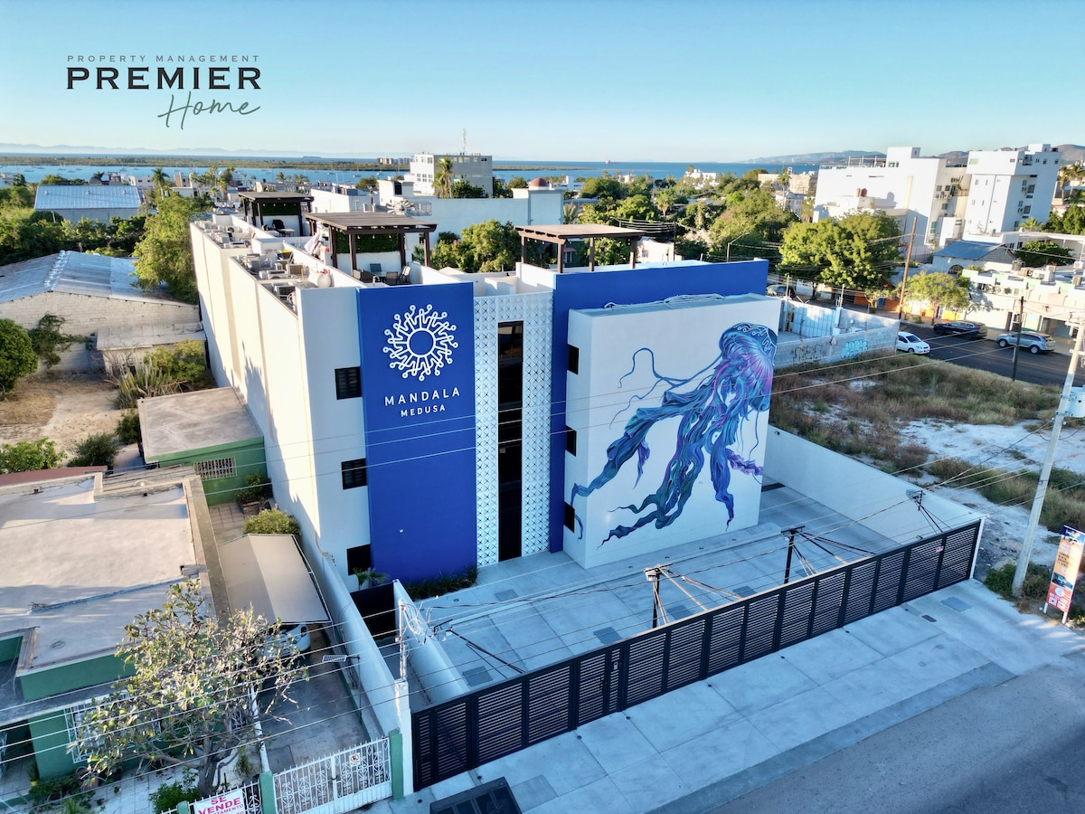 Este lugar tiene una ubicación estratégica: ¡será muy fácil planear tu visita! Al rededor de este Estudio podras encontrar restaurantes, bares, cafés y tiendas de moda asi como mercado local y famacia. a tan solo 2 cuadras de nuestro hermoso malecón donde podras disfrutar de un bella caminata con nuestros majestuosos atardeceres.