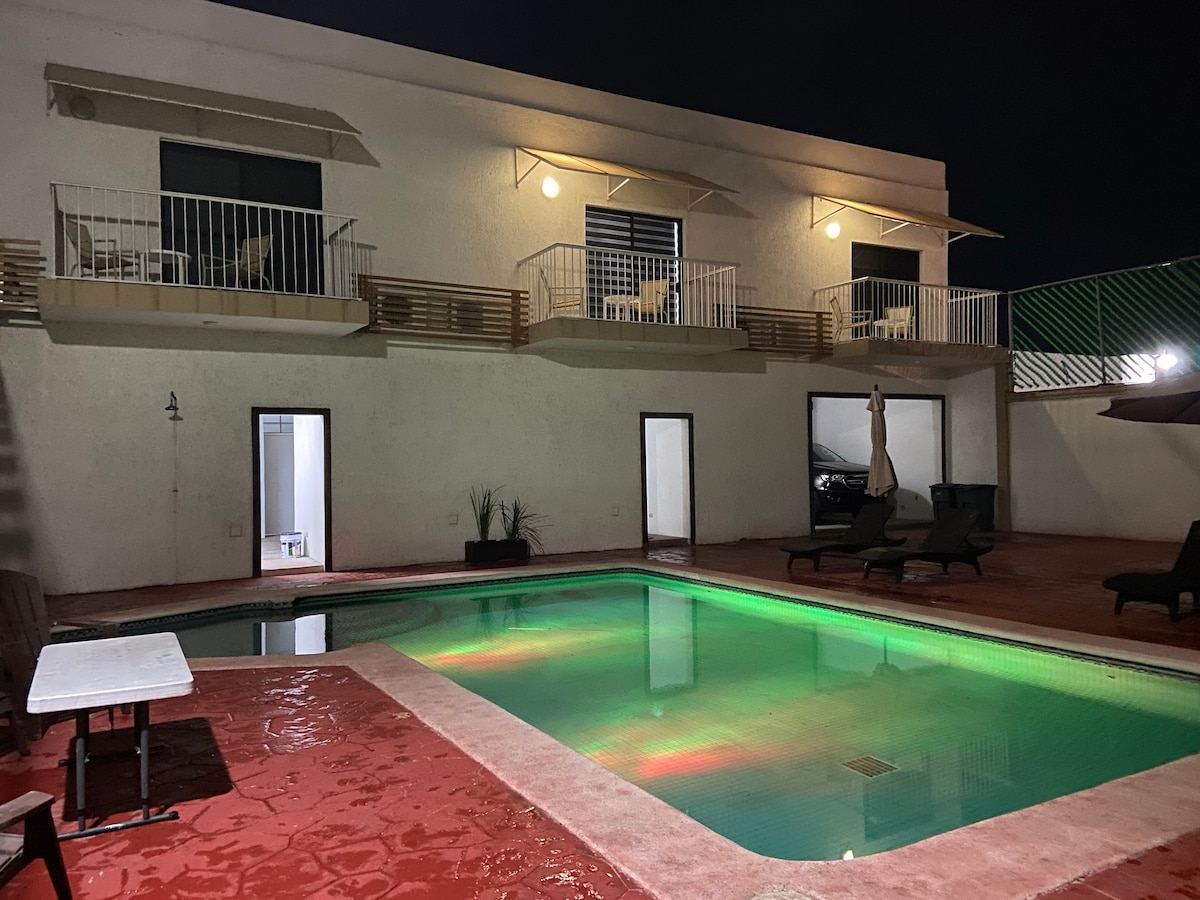 Baja California Sur: Descansa en tus vacaciones en la comodidad de nuestro nuevo, espacioso y elegante alojamiento. El condo esta' ubicado cerca del famoso Malecón de la Paz y de la Marina de Cortez. Todas las personas, niños y adultos, son bienvenidas. La ubicación muy céntrica te permite llegar al centro histórico de la ciudad con un paseo tranquilo y disfrutar los mejores restaurantes y cervecerías que se encuentran en sus calles típicas.