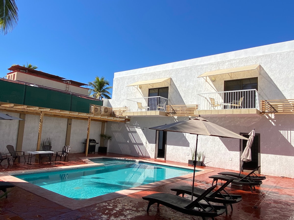 Ven a descansar en esta exclusiva suite para dos personas en el mejor condominio de la paz. La alberca pequeña tiene un chapoteado no es jacuzzi. Y la calefacción de la alberca pequeña solo se enciende en temporada alta. Nosotros avisamos un mes antes de que se prenda en las publicaciones.