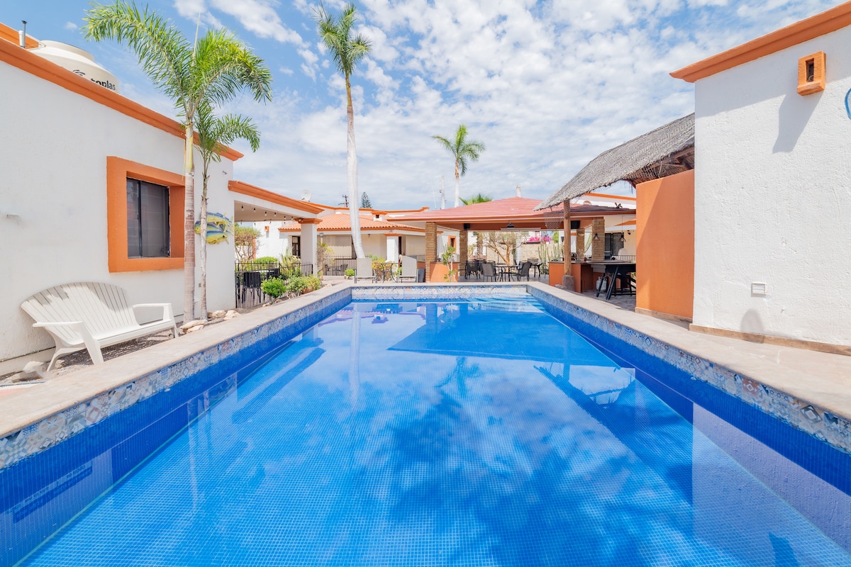 ¡Casa Tipo Loft a solo 7 minutos del Malecón! Ideal para disfrutar unas vacaciones inolvidables o celebrar una fiesta con tu familia o amigos registrados. Precio especial para equipos de trabajo. Te ofrecemos un asador, sala exterior, fogatero y polea para piñatas. Disfruta de Fire TV y una cocina con refrigerador Tecate, mini split y varios juegos, Además, Petfriendly. descuentos por estancias de 2 noches, semana o mes. ¡ El mejor costo-beneficio de todo México! seguir leyendo ↓