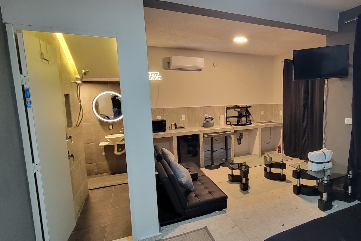 Descubre la comodidad de New York, a solo 7 minutos del Malecón en auto. Ideal para 2 pero caben 5 personas, nuestro espacio céntrico y seguro destaca por su diseño único. Disfruta de una cama Queen, sofá cama tipo cine, estufa de inducción, cocineta, cafetera, escritorio de trabajo, frigobar, y mini Split. Relájate junto a nuestra chimenea digital y luz efecto aurora boreal, un par de regaderas, sillas, hielera y sombra para playa, descuentos por semana y hasta un 50% por estadías mensuales.