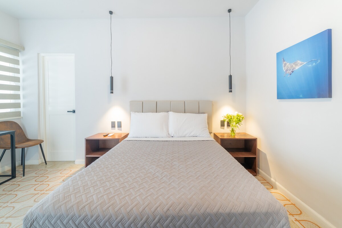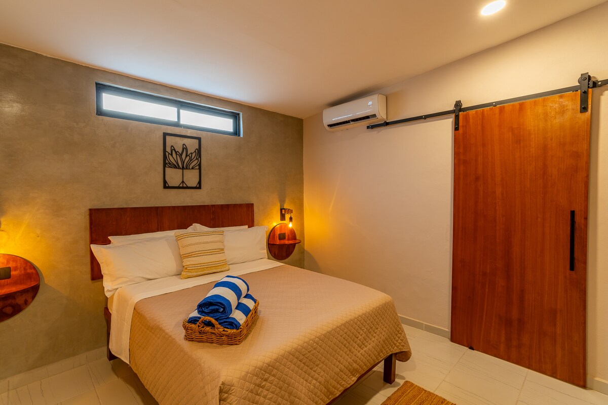 Comfy room located on a hostel that leads a tribute to all the beauty in the Baja. By staying here we want you to feel as a local , being able to admire all the beauty that our city has to offer as we paceños do.