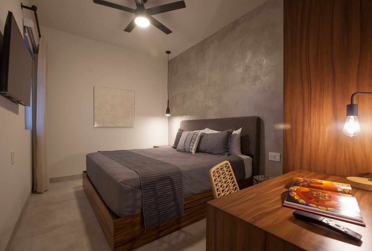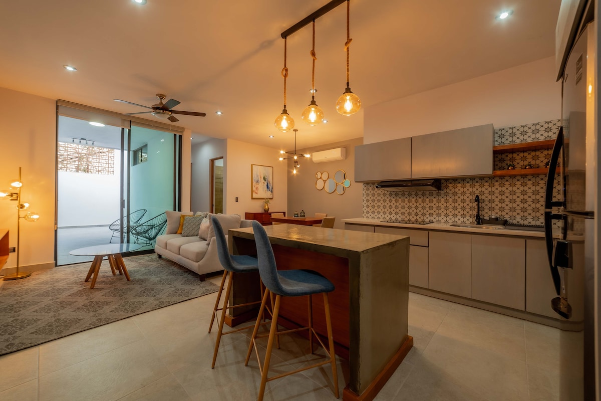 Disfruta de este alojamiento tranquilo y céntrico. Con un estilo industrial, espacioso para disfrutar solo, en pareja o en familia. Con la ventaja de contar con una hermosa terraza con vista al mar, encontrándose a solo 5 minutos caminando al malecón, restaurantes, tiendas de servicios y clínica médica. Cuenta con entrada privada y estacionamiento. comentario: por error en los algoritmos del GPS la dirección no es exacta. te invito a verificar en las instrucciones de llegada dentro de la app.