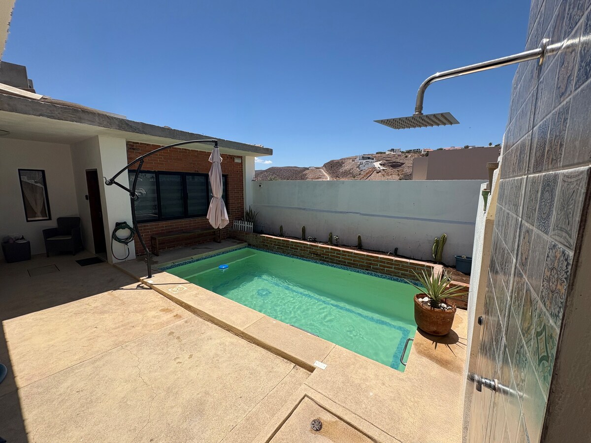 Casa con alberca y jacuzzi para disfrutar en compañía de tus amigos y familia capacidad de 21 huéspedes. 1 Recámara y 1 baño En el 1er piso con baño plegable, silla en la regadera y agarradores, para adultos, 4 recámara, 3 baños. cochera para 3 carros, A/C en todos los cuartos, sala/comedor, Favor de poner # correcto de huéspedes y mascotas, en la plataforma se pueden poner hasta 16 huéspedes, de ahí en adelante Son $13 dls X persona X noche, se paga al llegar o por la plataforma. Si facturamos