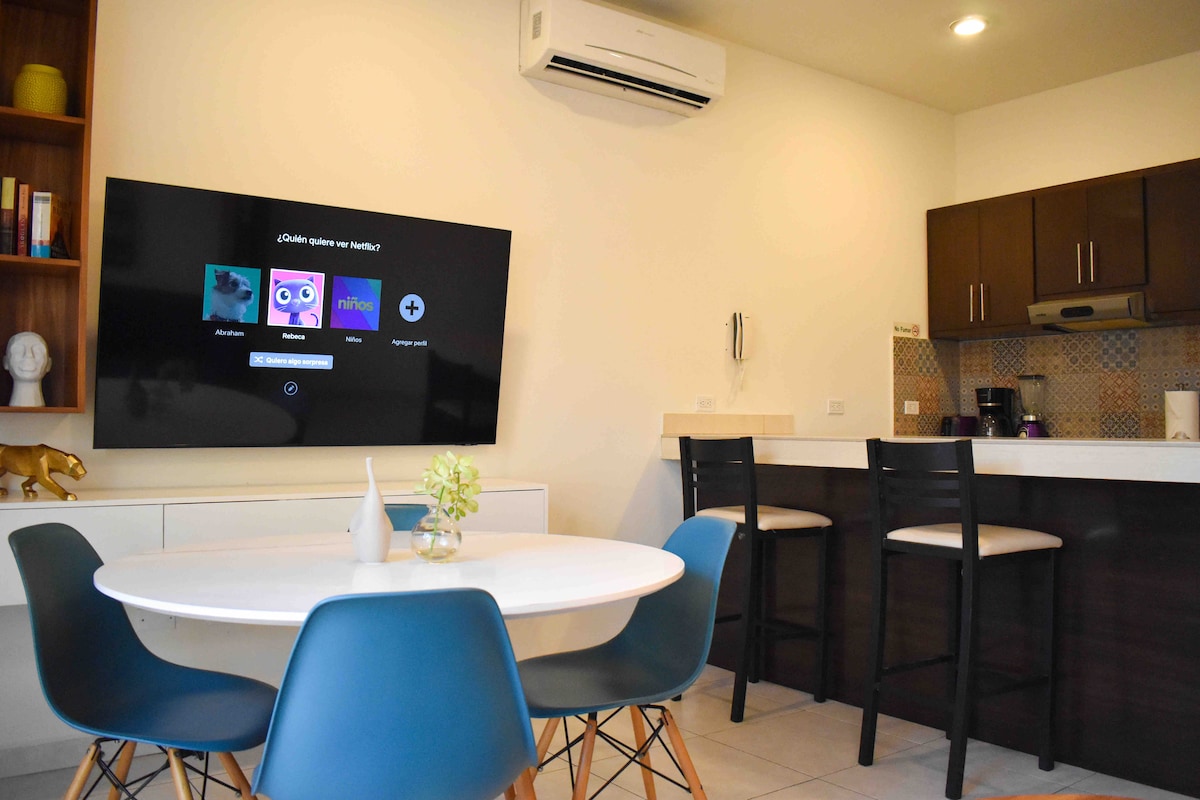 Descubre La Paz y sus playas, disfruta de tu estancia en nuestro Departamento céntrico recién remodelado. Su cocina equipada te permitirá cocinar tus comidas con ingredientes frescos del mercado local que encontrarás a media cuadra. Cuenta con aire acondicionado y calefacción, conexión Wi-Fi, sombrilla y mesa de Playa. Además, su ubicación central te permitirá acceder fácilmente al malecón y a una gran variedad de opciones de entretenimiento y Gastronomía.