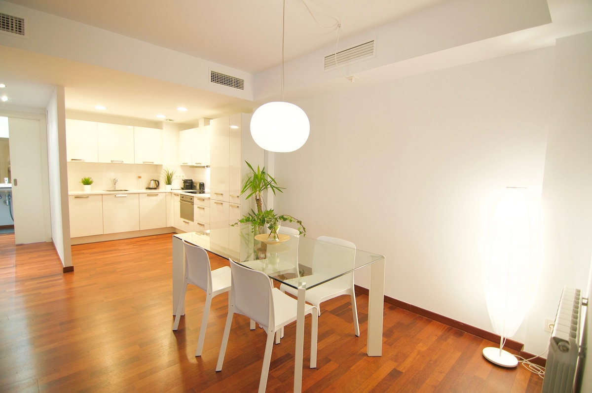 Extensive apartment is perfectly located, just where Diagonal and Paseo San Joan meet, a 20 minute walk to the downtown area. The flat has a generous space of 160m2 boasting 4 rooms, 2 bathrooms, and a huge living room. It has a capacity for up to 8 people. The gallery and 2 balconies are not to be missed!