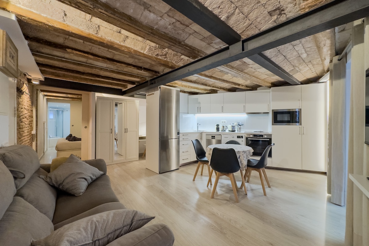 Time will pass and you will remember the magical sunsets of Barcelona while you watched the pulse of the city from the large terraced balcony. That's what travel is all about, memories that we will keep forever. This magnificent and spacious apartment, with retro design furniture and details right in the center is the ideal home for your dream vacation.