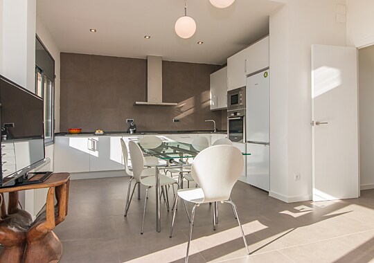 Welcome to your stylish and familiar 125m² retreat. Designed for supreme comfort, this contemporary apartment truly feels like a home away from home. Floor-to-ceiling windows bathe the space in light and connect you to a lush, beautifully arranged patio. Located near Sants Main Train Station (Sants Estació), our strategic position ensures exceptional connectivity with direct, easy links to the airport and city centre. Enjoy effortless travel and an unforgettable family or business stay.