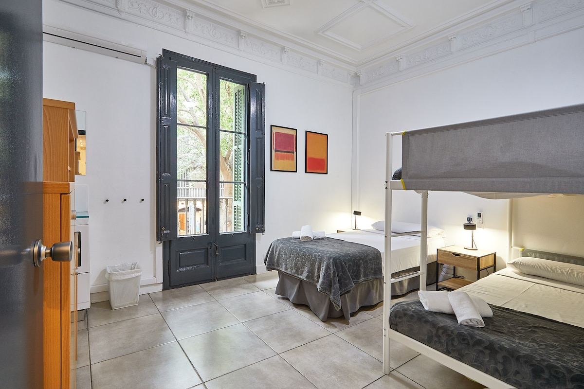 Luminosa habitación con balcón con vista a la calle Bruc en Casa Lolita Guesthouse, en la mejor zona del barrio de l'Eixample. A solo 500 metros de Passeig de Gràcia y 900 metros de Plaza Cataluña. Dispone de baño privado con secado,r dispensador de gel de ducha y shampoo, Smart TV con acceso a Netflix, a/c y calefacción, internet fibra óptica, escritorio para trabajar y muchas más comodidades. También podrás utilizar las zonas comunes del hostal: cocina y amplia terraza.