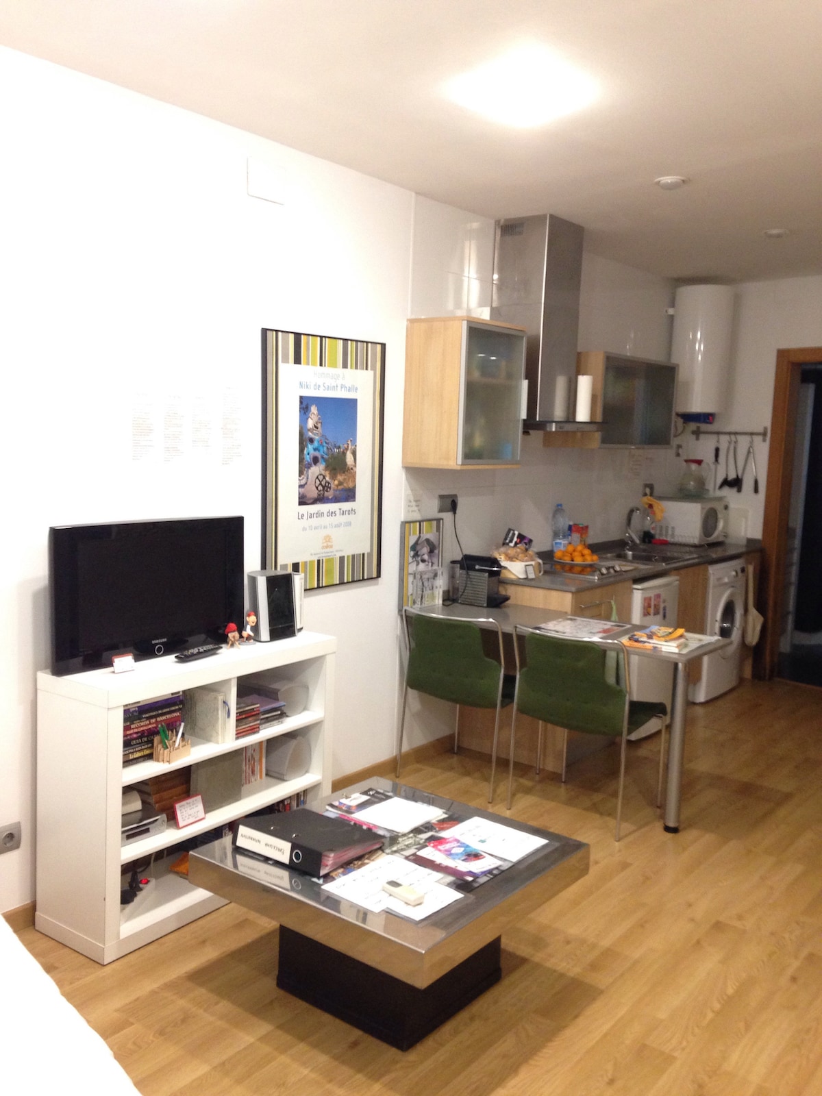 El apartamento es muy acogedor. Situado en pleno centro de Barcelona, a 10 minutos andando de Plaza Cataluña i las Ramblas. Se pueden visitar la mayoria de los lugares emblemáticos de la ciudad andando. El aerobus del aeropuerto tiene su parada muy cerca ,a 10 minutos andando