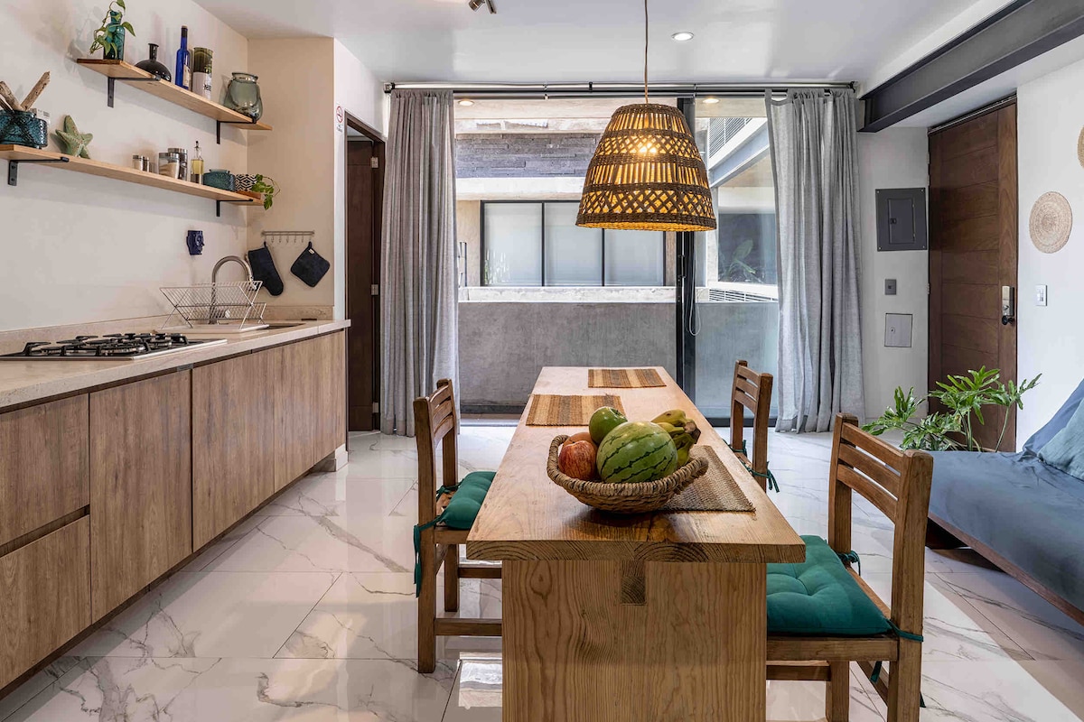 This loft is located in one of the trendiest areas of Guadalajara, but with all the comforts you need. From free parking, 24/7 security and the opportunity to walk to the supermarket or have a coffee nearby. We designed this ideal space to receive guests who want to work from home with a super internet and enjoy the city in the afternoon. The building has amenities such as a rooftop with the best 360 views of the city and an urban wall with private rooms