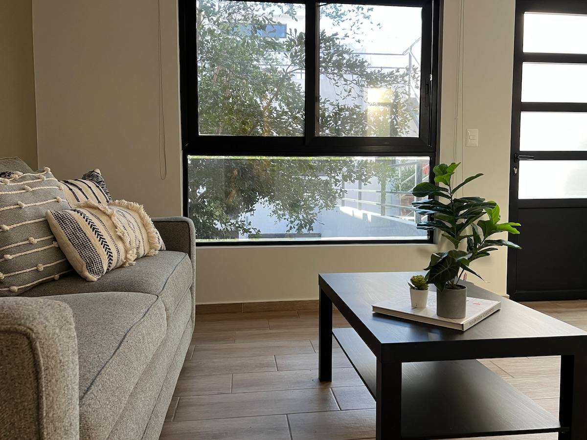 Refurbished apartment, ground floor level. Located a few blocks away from the financial district, Punto Sao Paulo and Midtown (a new luxury mall). Living room and bedrooms equipped with AC units. Departamento recién remodelado en planta baja. Ubicado a unas cuadras del distrito financiero, de Punto Sao Paulo y Midtown (un nuevo centro comercial de lujo). La sala así como las recámaras cuentan con equipo de aire acondicionado de última generación.