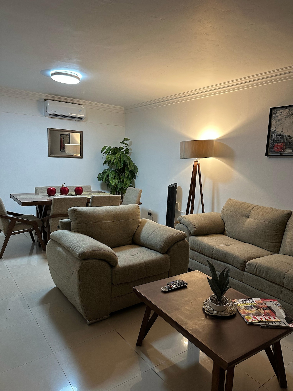Spacious, cozy apartment, ideal for working with excellent internet! 100 Megas.Two large bedrooms both with air conditioning, full bathrooms, walk-in closet, and ceiling fan. TV room where a fifth person can sleep. Living+dining room with a large window, and 4 portable fans to move around any area. Fully equipped kitchen includes dishes for 6 people. Previous guests have praised our apartment for its stylish decor, comfortable amenities, and prime location near vibrant cafes and restaurants.