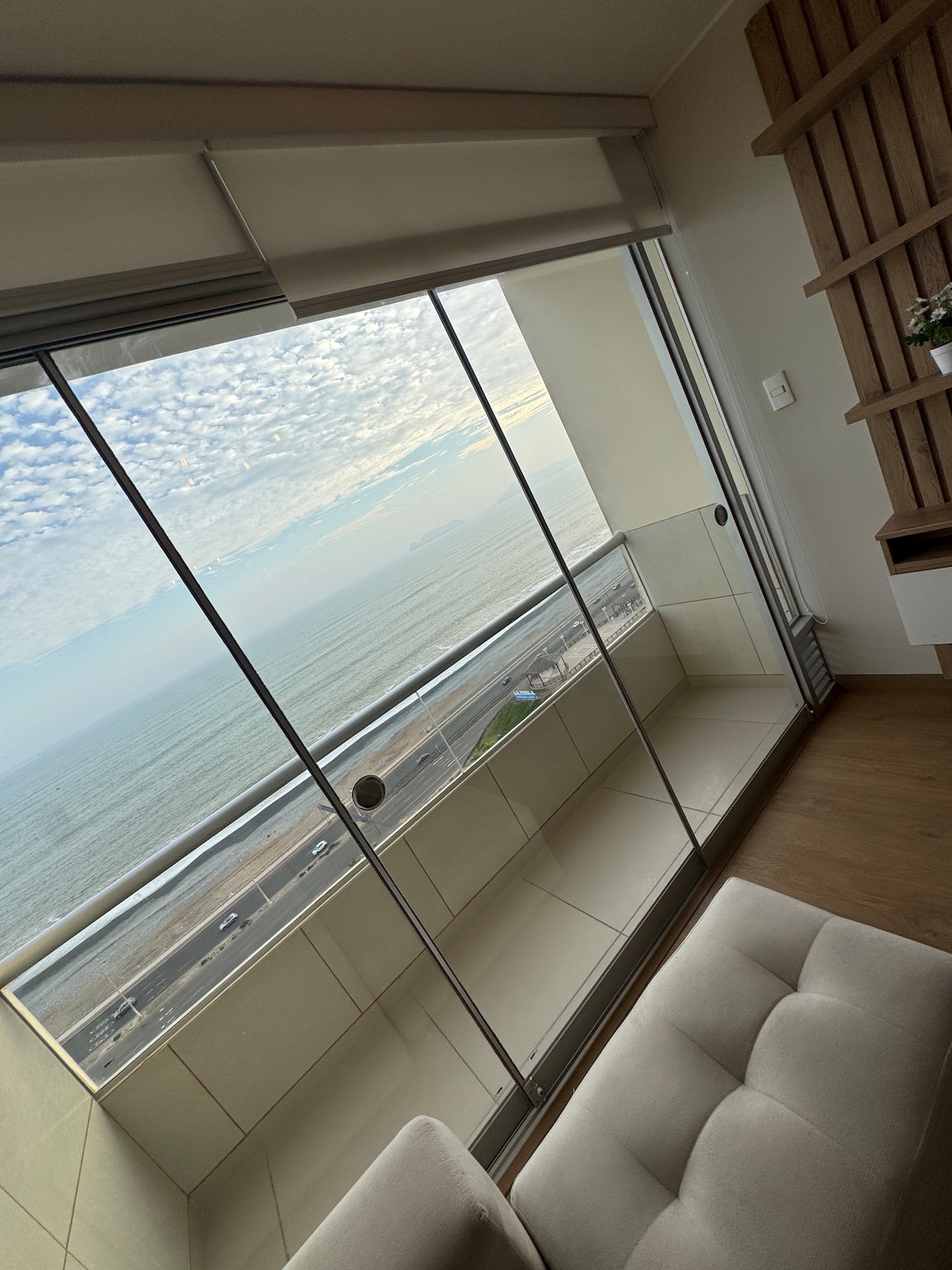 Disfruta de la hermosa vista al océano desde el balcón privado, mientras te relajas con el sonido de las olas. Cerca de restaurantes exclusivos y centros comerciales como Plaza San miguel. Además, contamos con una excelente ubicación que te permite fácil acceso a la Costa Verde y solo a 15 minutos del aeropuerto. El departamento cuenta con todos los servicios (wifi 200mbps Fibra óptica, agua caliente,etc). Ideal para jornadas de trabajo o relajo. Estacionamiento libre frente al edificio.