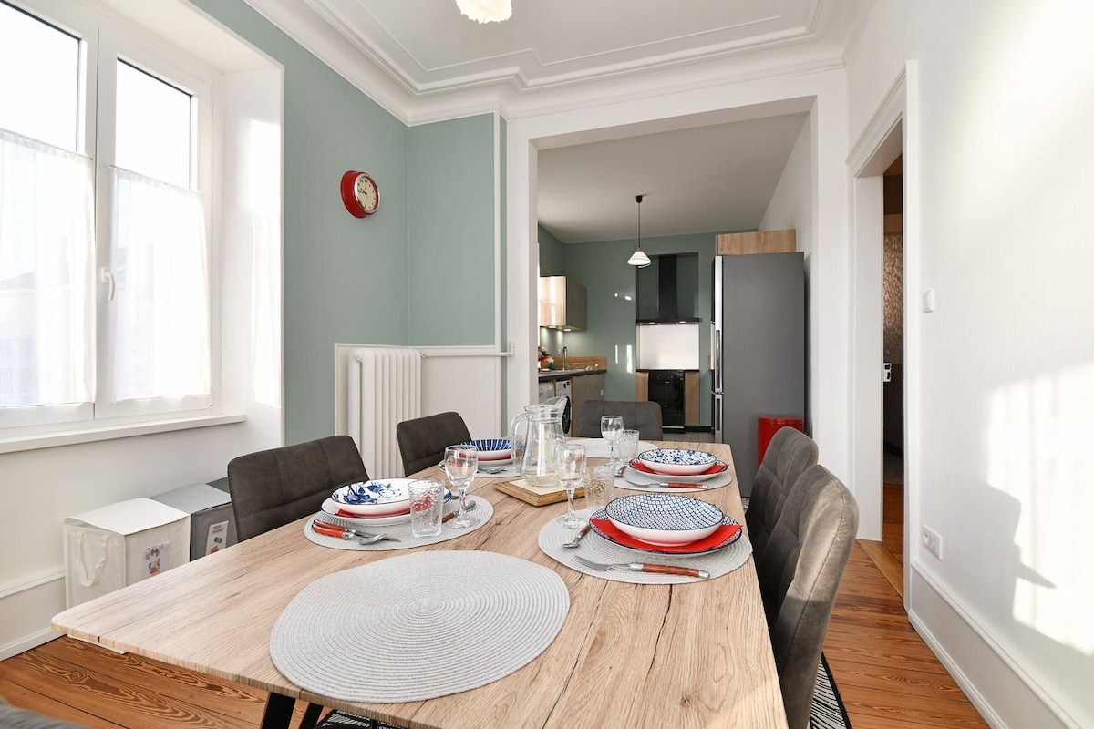 ★ Beautiful housing comfort, bedding of great brand. Bedsheets included. ★ WIFI broadband. ★ Fully equipped kitchen area (fridge, microwave oven, Nespresso machine, linens, ...). ★ Bathroom with bathtub, towels, shampoo, shower gel. ★ Historical center of Colmar ★ The train station is 10 minutes walk.