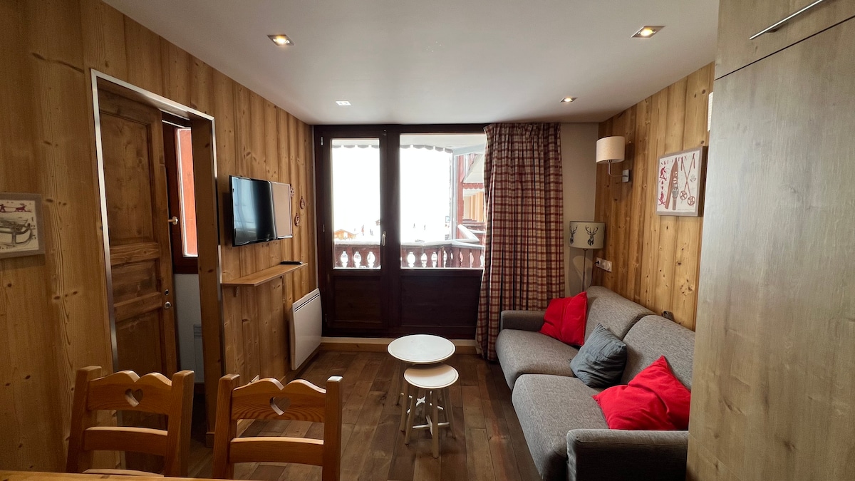 Studio cabine refait à neuf de 17m2, idéal 2 personnes, mais peut accueillir 4 personnes Il dispose de 4 couchages, un canapé lit double dans le salon, et 2 lits escamotables dans l'entrée A 2min à pieds des remontées mécaniques(150m) et proche de tous commerces, un arrêt des navettes gratuite est juste en bas de la résidence L'appartement dispose d'un lave vaisselle, cafetière, grille pain et bouilloire, ainsi que d'un casier à ski Les draps, serviettes et le ménage sont compris Wifi gratuit