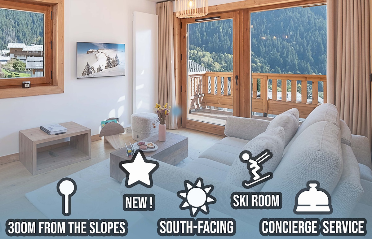 ✨Brand New 2025 built in Megève✨ 4BR, 3.5BA duplex at the Chalets of L’Éclat des Vériaz, nestled in a 3-hectare park with Mont Blanc views. Indulge in the spa with indoor/outdoor pools, sauna, hammam, jacuzzi, salt cave, gym & lounge. Families will love playgrounds, kids’ playroom, tapas lounge & massage room. 1.3 km (15'stroll/7'free bus/3'car) from Megève’s ski slopes, boutiques, cafés & gourmet restaurants!