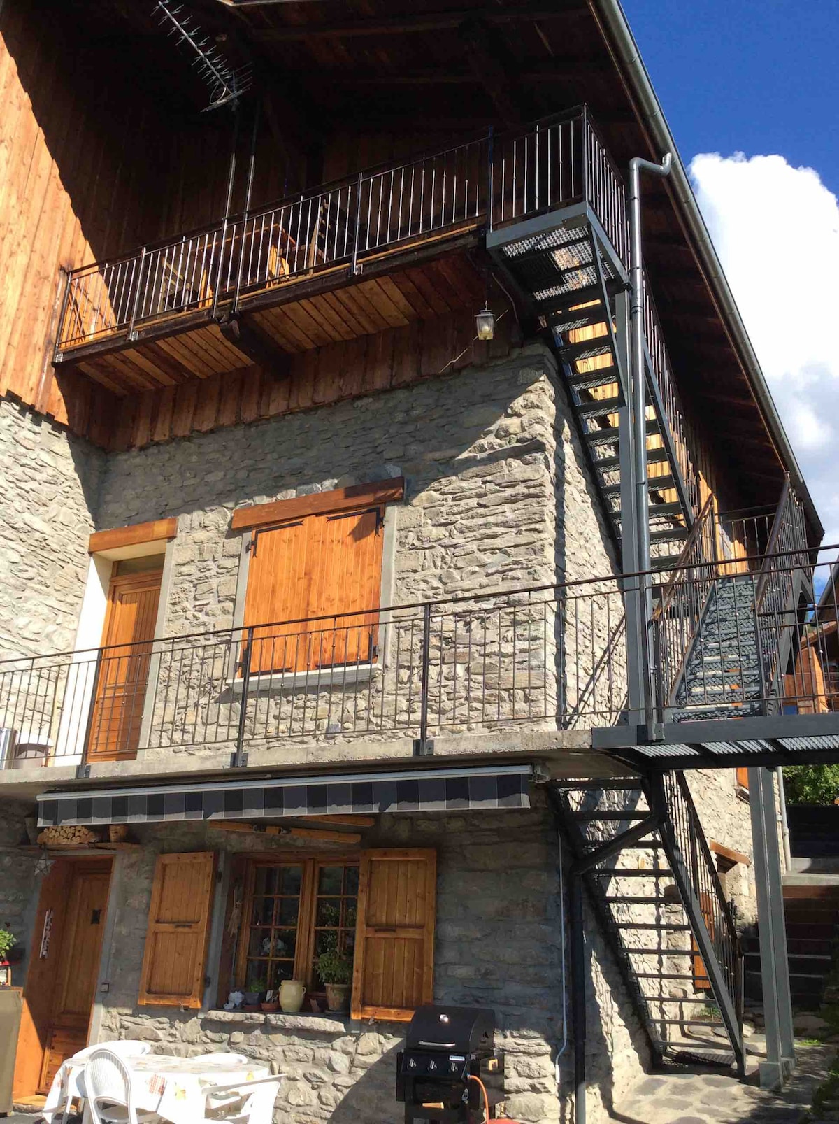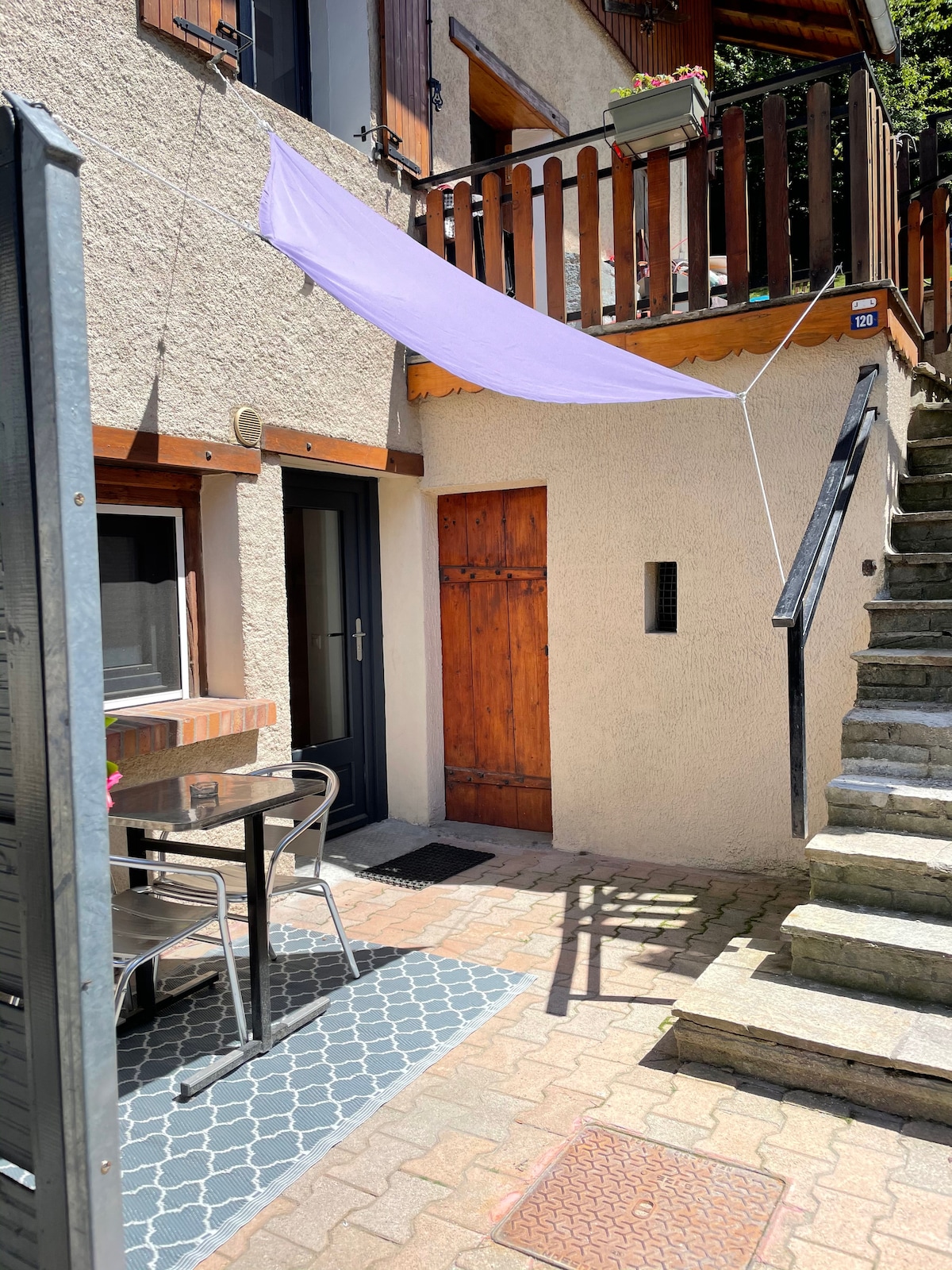 Au cœur d'un petit hameau calme, charmant studio en rdc de maison, rénové et atypique par son plafond voûté. Salle de bain / toilette, cuisine toute équipée ouverte sur salon, mange debout avec tabourets, chambre séparée par un claustra. Terrasse et petite cave attenante pour entreposer deux vélos. Emplacement en vallée au pied de la station de la Plagne, situation idéale pour accéder au stations voisines des vallées de la Tarentaise et Bozel . Linge de lit et serviettes fournis. Boîte à clefs.