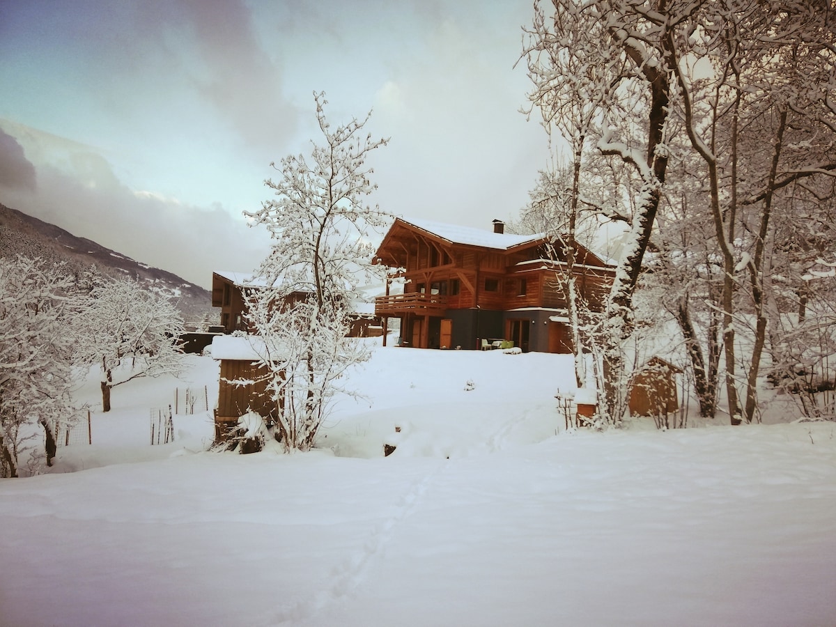 Studio cosy et chaleureux dans un cadre très nature. Entrée indépendante et terrasse privative. Vue imprenable sur le Mont Pourri 3779m, Aiguille Rouge, Aiguille Grive et le domaine des Arcs. A 10 minutes en voiture du premier télésiège reliant le domaine Paradiski, vous êtes également tout proche de la piste cyclable reliant Aime à Bourg Saint Maurice. Navettes VTT l'été, base de loisirs avec plan d'eau et rafting à 5 minutes à pied .