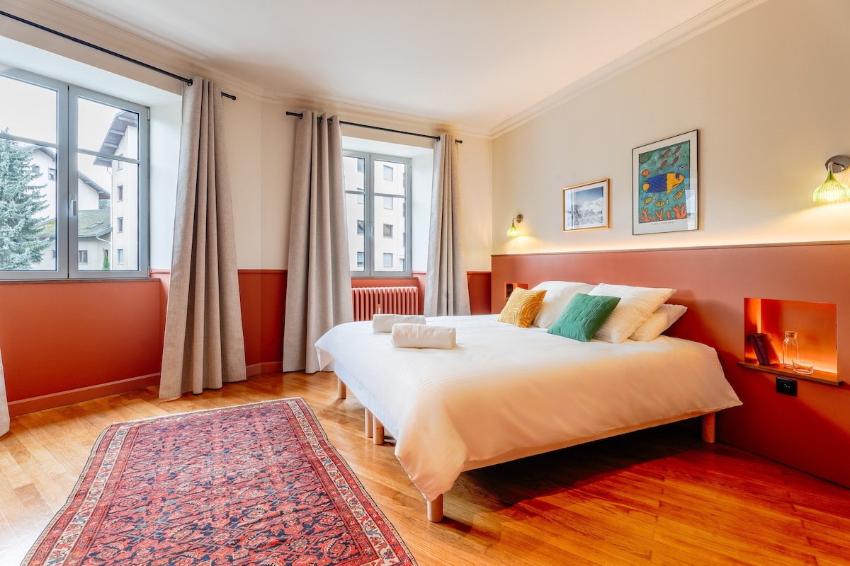 Logement situé dans une résidence calme et sécurisée, proche des commerces, à 10 minutes à pied de la gare SNCF et à 20 minutes des premières stations de ski. Chambre avec salle de bains privative, linge de lit et de toilette fourni, armoire, écran TV, accès Wi-Fi (fibre optique). Petit-déjeuner compris.. Parking au pied de la résidence.