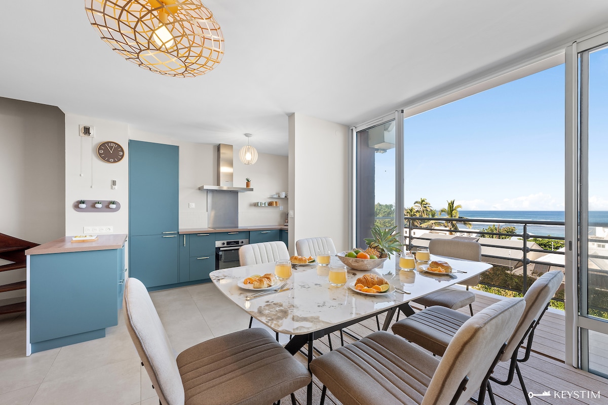 F 2 à 5 min en voiture de l plage de Grand Anse , l'une des plus belle plage de l'île, dans un écrins de verdure vue sur l'océan Indien , le F2 possède une piscine extérieure à partager. Cet appartement modernes vous offre un cadre de rêve pour vos vacances sur l'île de la Réunion ou vous pourrez vous détendre au bord de la piscine chauffé du 1er juin au 31 août , ce logement ne convient pas au enfants ni bébés.