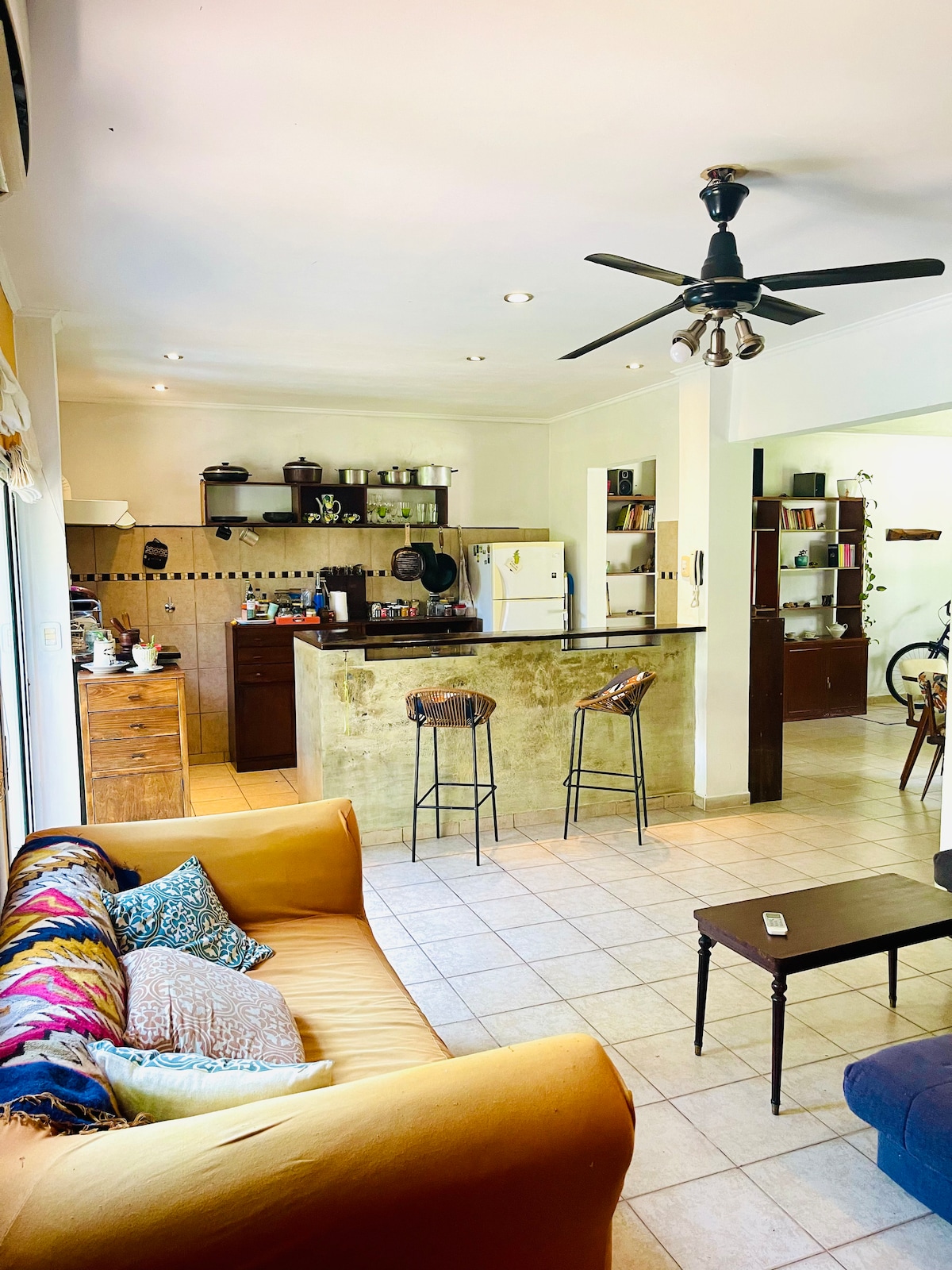 Sean Bienvenidos ! Les ofrecemos una casa familiar, luminosa, en buena zona, cerca de todo, con espacios amplios. Posee, un Living con balcón a la calle, un Comedor, una Cocina completa, tres dormitorios, uno para matrimonio con baño en suite, otro para 2 personas ( 1 cama de 1 plaza y 1 para niño) que además cuenta con juegos y libros para niños, y una tercera habitación arriba, que tiene una cama extra, además cuenta con un patio techado, el Garaje para un auto mediano y mucha Armonía.
