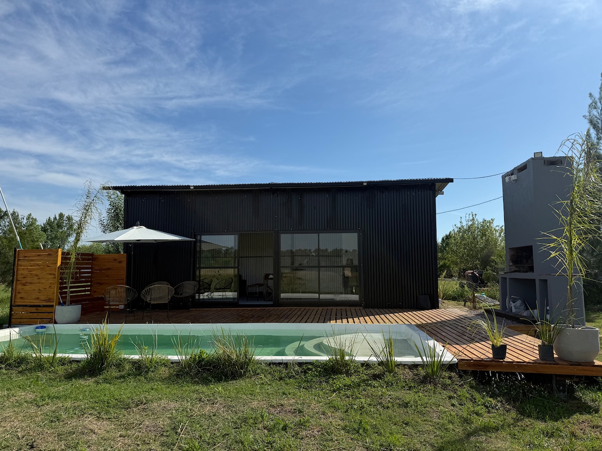 No se permiten reuniones ni eventos. Capacidad máxima del lugar es hasta 4 personas. Se respira aire de campo, naturaleza, vida sana y un descanso pleno. Viví tu experiencia... . Wifi • Fogón • Parrilla • Piscina • Smart Tv • Split F/C en todos los ambientes • Vajilla Completa • Lavavajillas • Pequeños Electrodomésticos varios • Lavarropas • Las 2 habitaciones c/ cama matrimonial • 2 baños completos 1 Toilette •