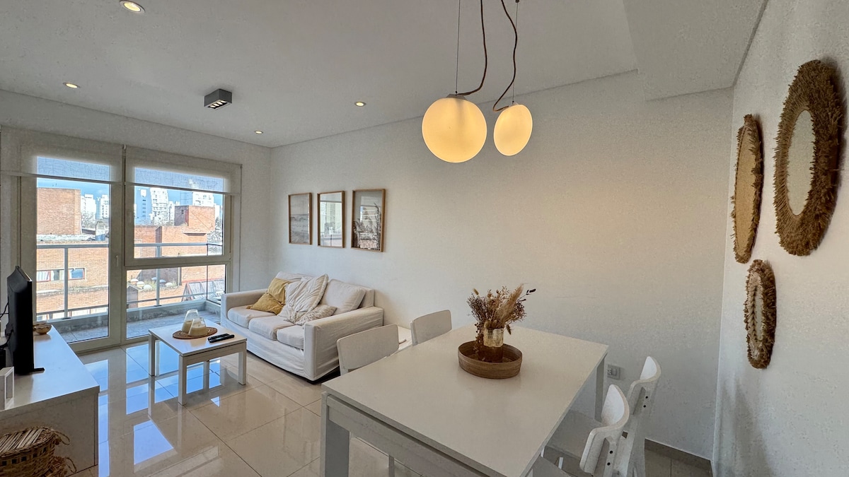 Los invitamos a sentirse como en casa en este excelente semipiso (55 metros) de ubicación inmejorable, con piscina y vista al parque San Martín. A 10 cuadras del centro de la ciudad. Enorme balcon terraza con parrilla, mesa y sillas. Equipado con todo lo necesario para que tu estadía sea perfecta. Wifi y smart tv con cable y Netflix en living y habitación. Sommier 2 plazas y cama de 1 plaza, baño en suite completo y toilette de servicio. La cochera tiene un costo adicional. Airbnb only.