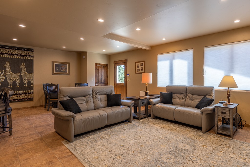 This two bedroom, one bath space is perfect for a small family or a few friends. Enjoy coffee with views of the Animas Valley, warm up next to the fireplace or soak in the 4-person hot tub. we have a full kitchen and bathroom. There's a king bedroom and a queen bedroom. We also have a small dinette in the living room for enjoying meals. There's a smart TV with streaming services, a record player, a karaoke microphone, a portable speaker, card games and puzzles for entertainment.