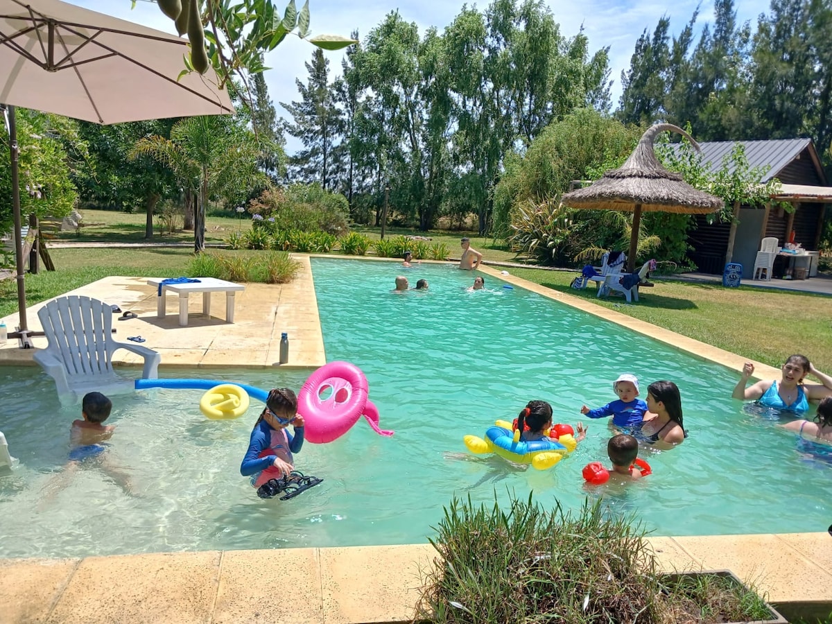 Casa Quinta 🏡 ideal para pasar el día en familia. Un lugar único rodeado de arboleda y 🌲, Pileta, Parrilla 🍖 , Cancha de fútbol 🥅 , entorno natural, quincho, fogonero. Relájate con toda la familia en este tranquilo alojamiento.
