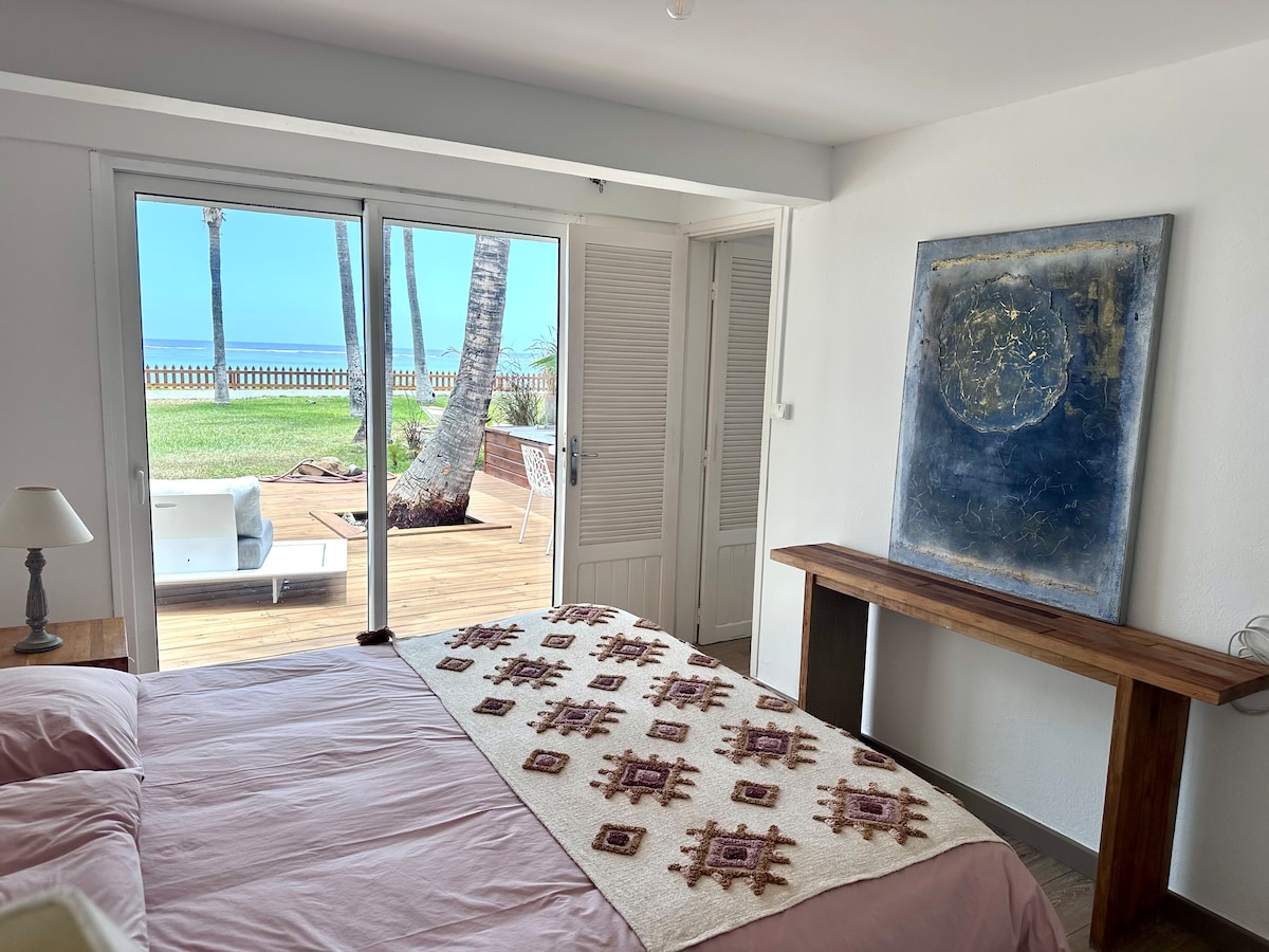 Rez de chaussée indépendant d'une case sur pilotis, situé dans une cocoteraie. Prévu pour 2 personnes, il est composé: - d'une chambre, d'une salle de bain extérieure (eau chaude) et WC, d'un espace ouvert sur l'extérieur avec coin cuisine équipée et d'un jardin avec jacuzzi et piscine. Situé en bord de mer en baie de Saint Paul dans une réserve naturelle exceptionnelle (cocoteraie et étang), près de commerce du centre-ville, du marché de Saint Paul et de la route des Tamarins. Endroit calme.