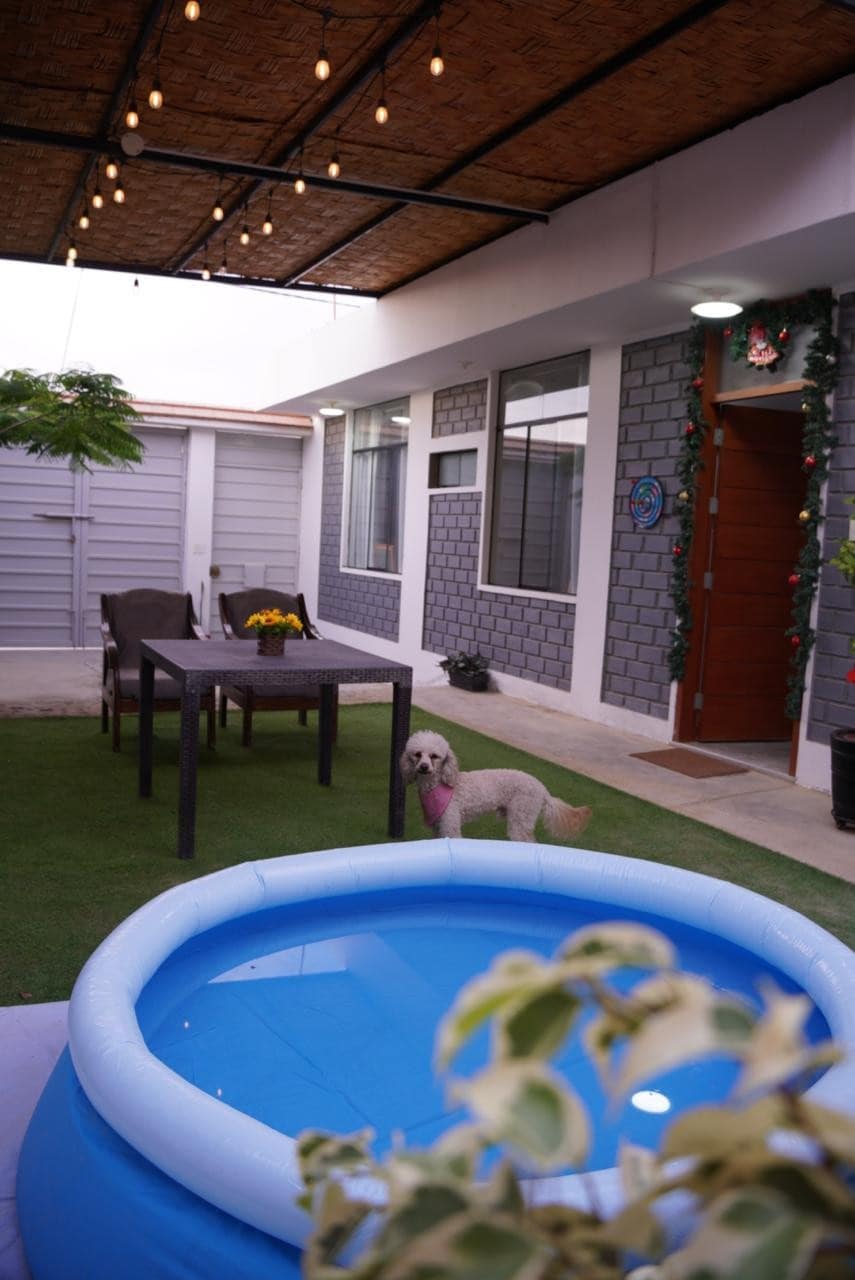 Lleva a toda la familia a esta amplia y cómoda casa, totalmente amoblada, con dos espacios de estacionamiento, caja china, todos los dormitorios con baño propio, wifi. Lavadora, cocina equipada y 02 frigideres. Piscina recién construida con sistema de Hidromasajes.