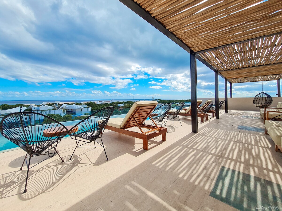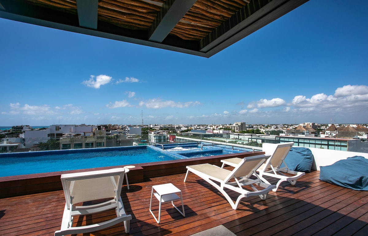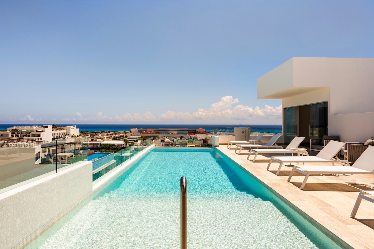 You'll have the best views in town! Enjoy your private rooftop pool oasis and panoramic views of Playa del Carmen and Caribbean Sea. This penthouse suite is a short walk to beaches, restaurants and shopping. Located right on the famous Quinta Avenida our hideaway, at StayCielo, is close enough to walk to nightlife but far enough from the noise that you can enjoy a peaceful evening at home. too. A 5 min walk to Martina & Encanto Beach Clubs as well as great dining options. Message me to chat!