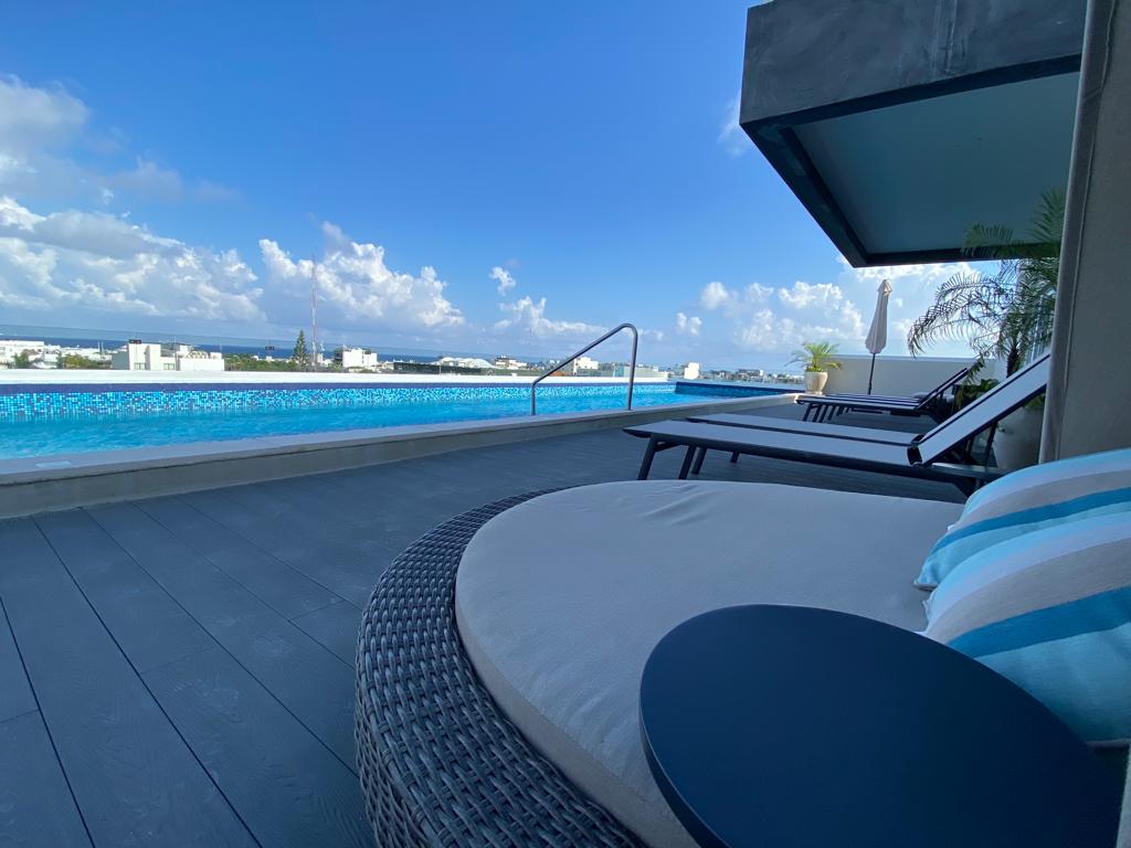 ¡Disfruta del lujo y la comodidad en nuestro departamento! Cuenta con 1 recámara elegante con vista al mar, de una terraza privada y amplia con vista espectacular. A pocos minutos caminando de la playa y la quinta avenida. Estacionamiento privado, seguro y gratuito. Rooftop con vista al mar Caribe, alberca, jacuzzi, Gym y baño de vapor. Cuenta también con lobby y su recepción y seguridad 24/7. ¡Reserva ahora y vive una experiencia inolvidable!