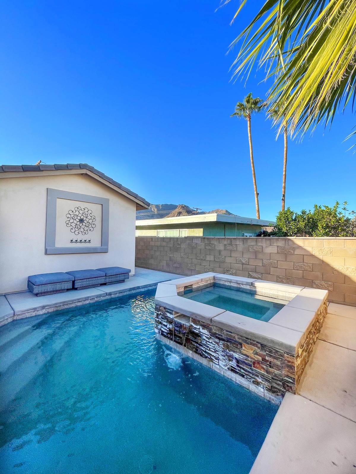 Welcome to Villa Vallejo! Our villa is situated between the Santa Rosa mountains and is surrounded by beautiful views all day long. Star gaze at night from the jacuzzi or roast marshmallows at the fire pit, Villa Vallejo offers the ultimate in relaxation. Biking and hiking are just a few blocks up the street. Take in Happy Hour at Old Town La Quinta, or head to downtown Palm Springs for night life. We are just a 12 minute drive to Coachella festival. LIC #064207