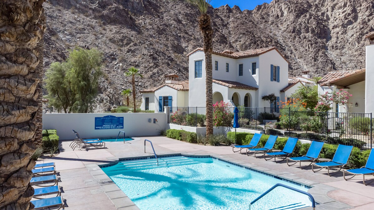 Unwind in this quaint, perfectly-located studio with fireplace located next to the beautiful blue paseo fountain and a 90-second walk to the main pool & gym. The hosts are hotel executives and have outfitted this villa like a LUXURY HOTEL. Sip on a cup of Keurig coffee in the morning and stroll around the picturesque grounds at the base of the Santa Rosa mountains or take a short walk to the Waldorf Astoria La Quinta Resort next door for some great dining options.