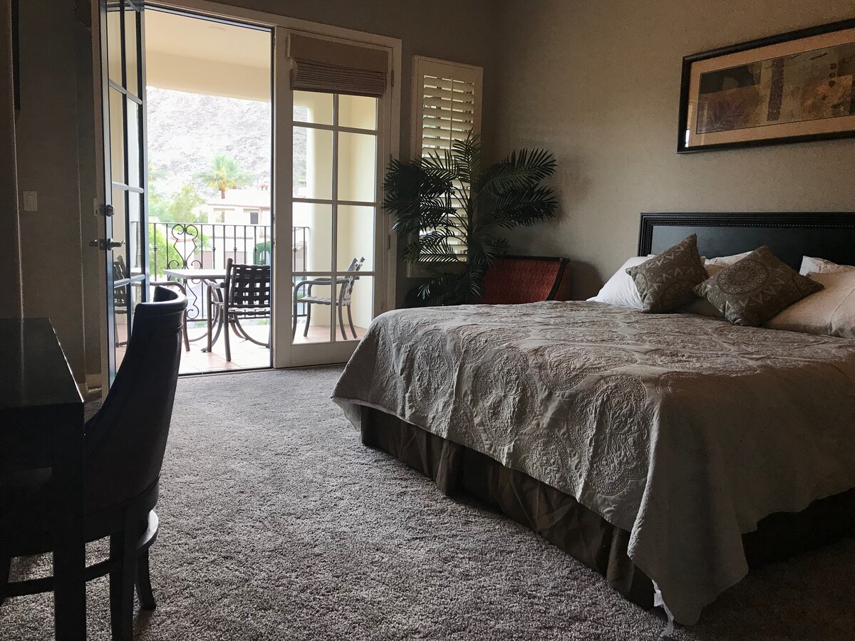 Luxury bottom level villa next to Embassy Suites Hotel. Walking distance to restaurants and dining, salons and services, family-friendly activities, shopping, nightlife, and minutes from Coachella Music Festival, Stagecoach, Indian Wells Tennis Gardens, and resort golf. You’ll love my place because of the outdoors space, the neighborhood, the comfy bed, and the kitchen. My place is good for couples, solo adventurers, business travelers, and families with kids.