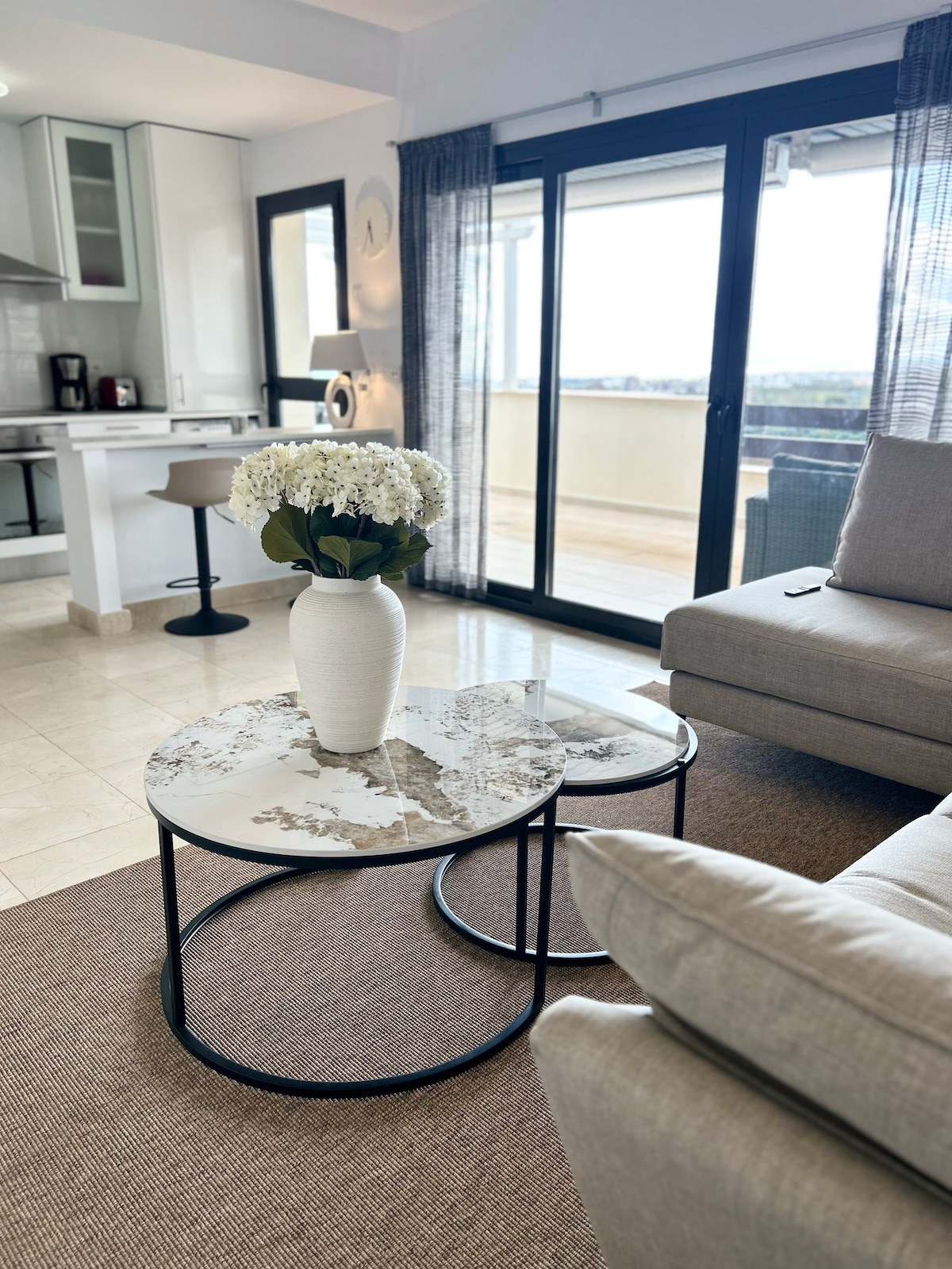 Our new, HIGHend apartment, just 8 minutes from Marbella's center. It offers sea views, creating a tranquil setting for your Spanish holiday. The apartment has Scandinavian elegance w/ clean lines, neutral tones, & minimalist design, creating a bright & sophisticated atmosphere for a memorable stay. Our guest can access the spa w/ heated pool, sauna & gym, all free of charge w/ fantastic sea views. The gym is well-equipped w/ top-line machines & the clubhouse adds a social element to the stay.