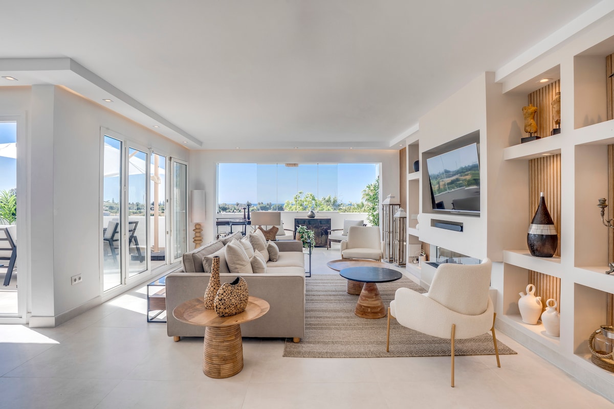 Radiant brand new apartment in the most exclusive area of Marbella, the Golden Mile, finished in maximum quality materials and tastefully refurbished. Being only a 4-minute stroll from the beach, this penthouse is the perfect location for a family vacation. Around the area are some of the most demanded services in Marbella: Puente Romano Hotel, Nobu Hotel, its Tennis and Spa Clubs, several golf courses, Puerto Banus and top restaurants, among which BIBO Dani Garcia, Nobu, New Tai Pan and more.