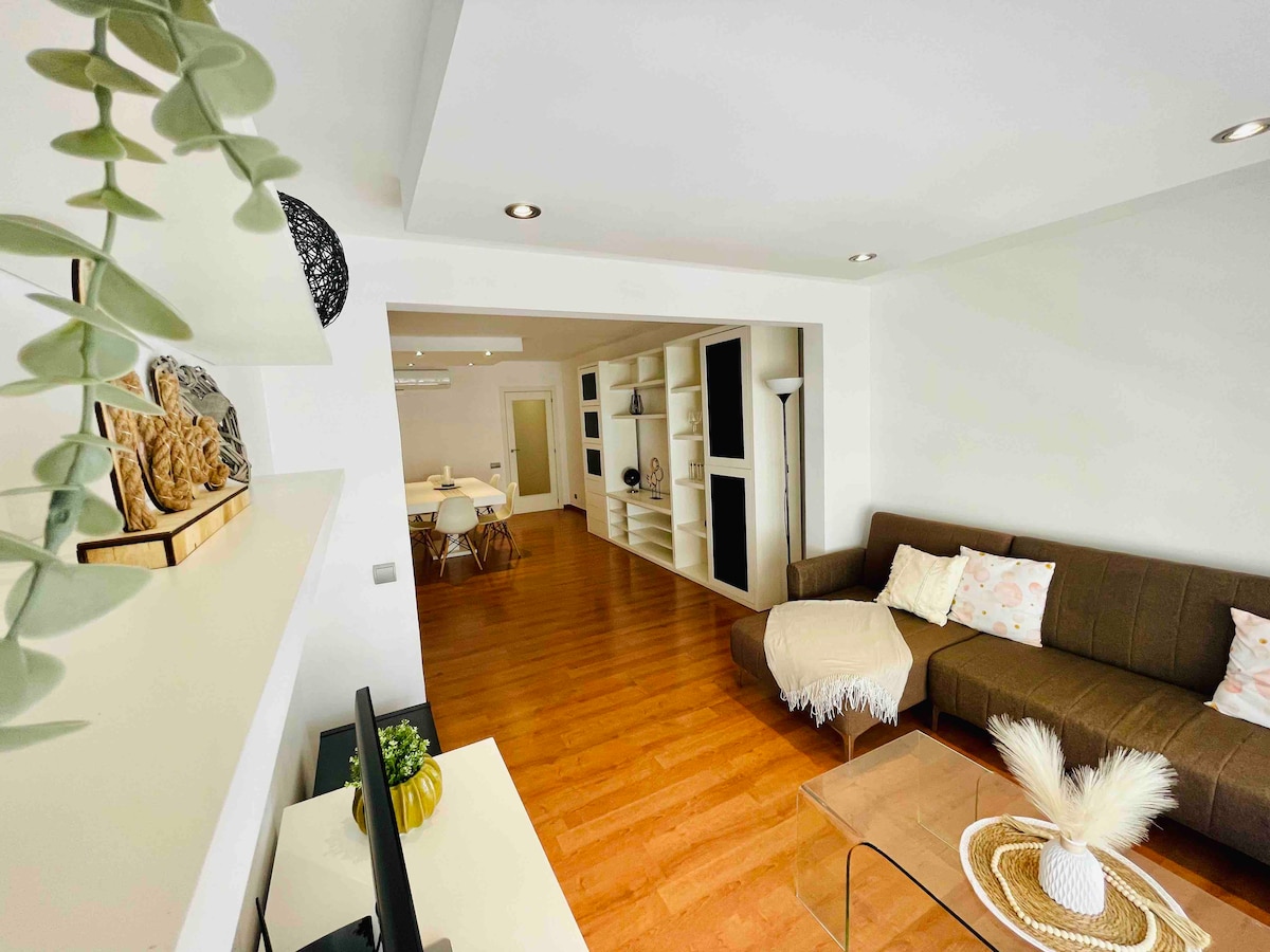 Apartment in Sant Carles de la Rápita (Tarragona), 3 minutes walking from the town center. Sea views, new, very bright, equipped with everything you need to enjoy the stay. Fast Wifi, Smart TV with Netflix, air conditioning, elevator and free street parking. Refrigerator, oven, dishwasher, washing machine, microwave and coffee maker. It is fully equipped with cutlery, pans, etc. Included: sheets, towels, shampoo, gel, etc.