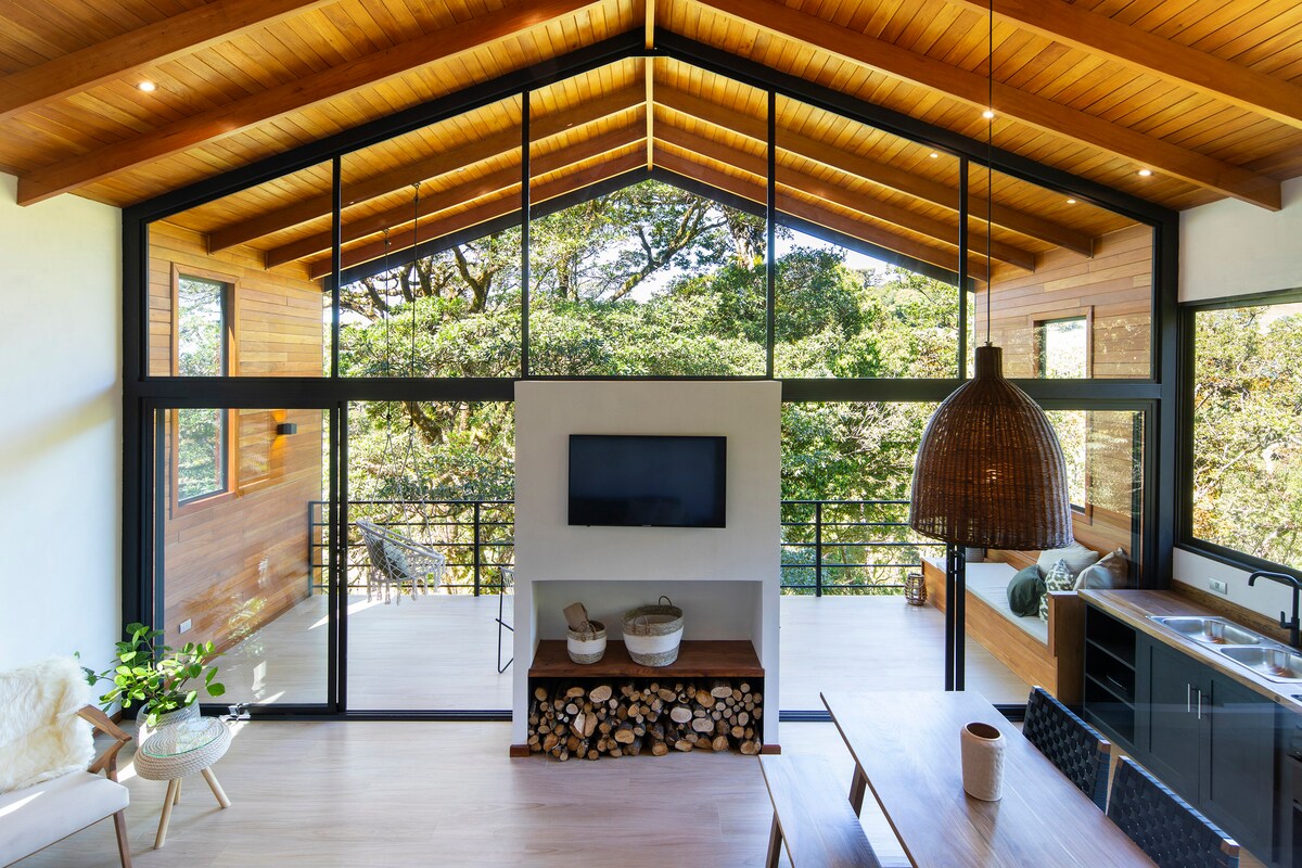 Experience Monteverde from an exclusive retreat with breathtaking mountain views and unforgettable sunsets from your private jacuzzi. Surrounded by lush nature, this luxurious and cozy space offers both comfort and privacy. Perfect for a getaway with family, friends, or as a couple—come and enjoy a unique experience in Monteverde!