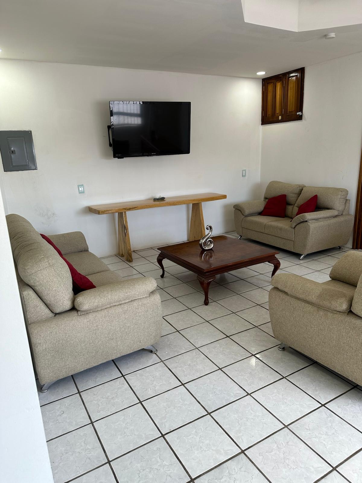Cómodo departamento para una estadía agradable. Cuenta con buena iluminación y ventilación. Ubicado frente a unidad deportiva, lugares a la redonda como gimnasio, tiendas de abarrotes, centro de salud, lavandería, puestos de comida y paraderos de camión. Entradas y salidas rápidas hacia las distintas carreteras. Cuenta con: Habitación con cama kingsize y A/C. 1 sofacama. Cocina con parrilla y frigobar (cuenta con los enseres necesarios para cocinar). Agua caliente por medio de calentador solar.