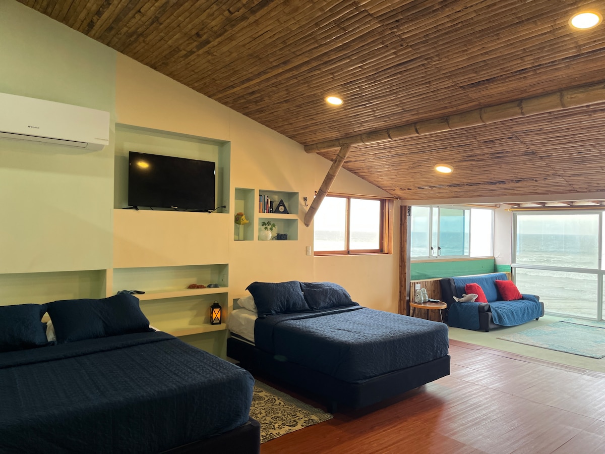 Villa Frente al Mar • Full equipada • Pet-Friendly Despierta con el sonido de las olas y una vista espectacular desde tu balcón privado. Estamos a pasos de la playa, en una zona tranquila y segura, con panaderías, tienditas y restaurantes cerca. La villa es acogedora, con aire acondicionado, hamaca, escritorio y todo lo que necesitas para relajarte. Perfecta para escapadas románticas, trabajo remoto o explorar Ayampe, Los Frailes e Isla de la Plata. Importante: no contamos con garaje interno.