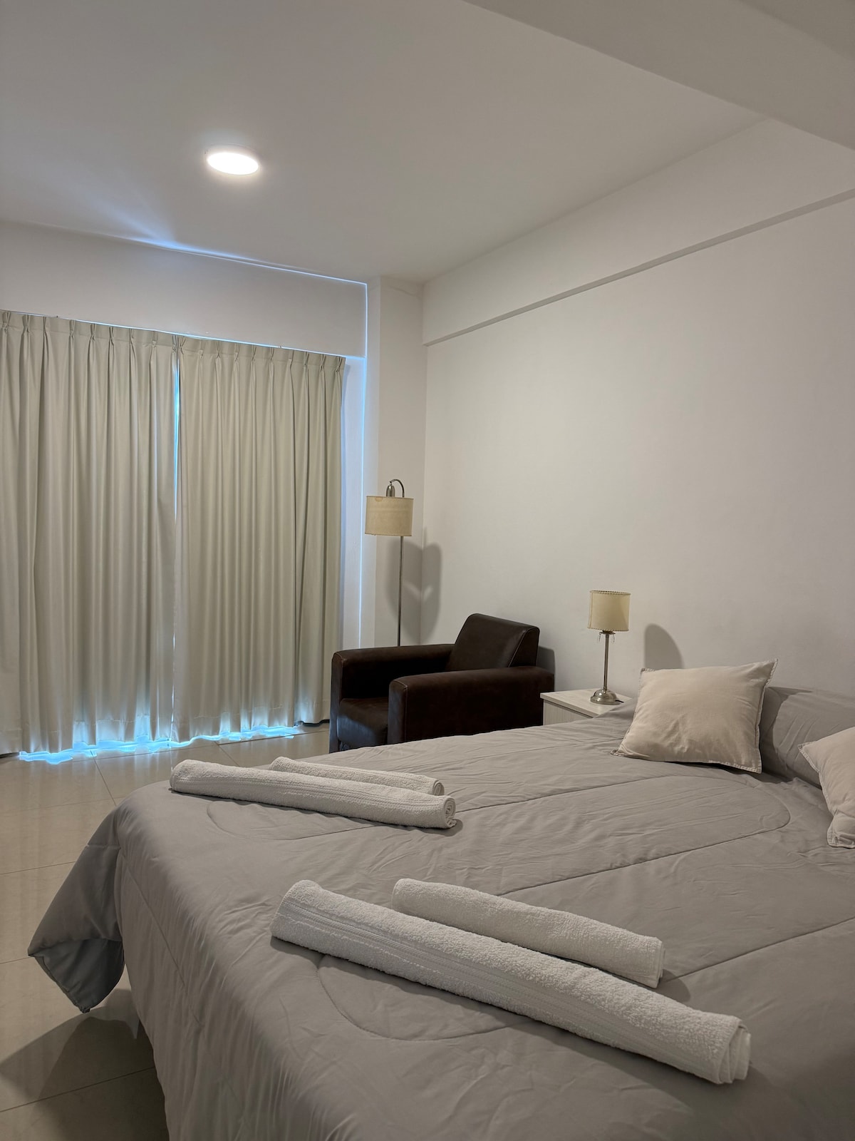 Disfrutá de una suite moderna y luminosa en pleno centro de La Rioja, a solo 2 cuadras de la plaza principal. El espacio está diseñado para dos personas y cuenta con una cómoda cama king, balcón con vista abierta y detalles de diseño pensados para que tu estadía sea relajante y confortable. Ideal tanto para escapadas de pareja como para viajeros que buscan comodidad, buena ubicación y descanso de calidad.