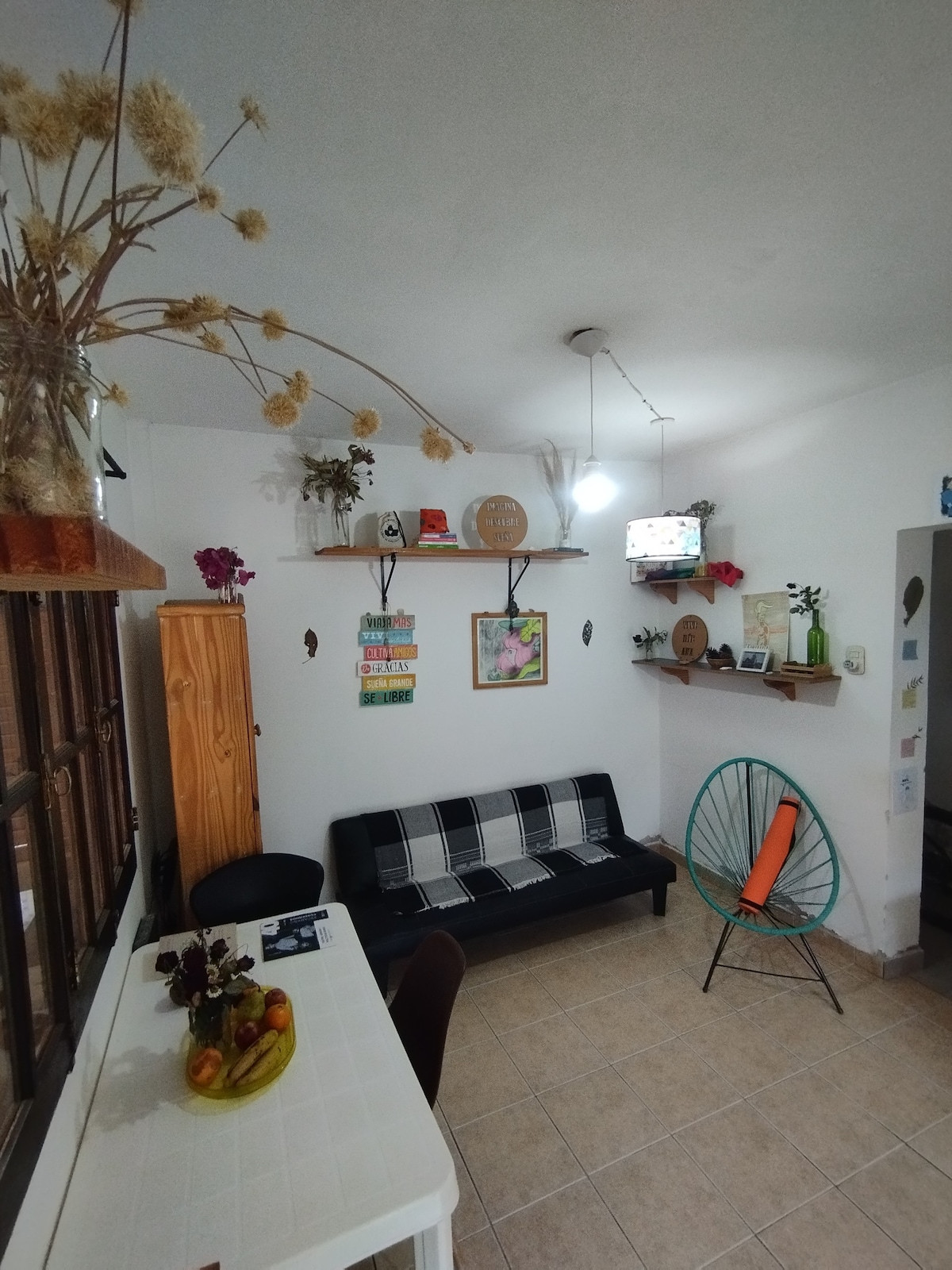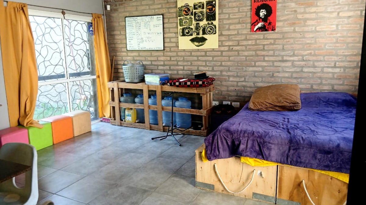Aqui encontraras tu lugar de descanso que te hara sentir como en tu propio hogar, te ofrecemos todo lo que necesitas para sentirte cómodo. podras disfrutar del jardin y de la hermosa vista a la montaña, el lugar es silencioso para q puedas disfrutar de una lectura o del simple cantar de los pajaritos.... Tendras un lugar comodo , limpio y agradable para tu estadia te lo eseguramos