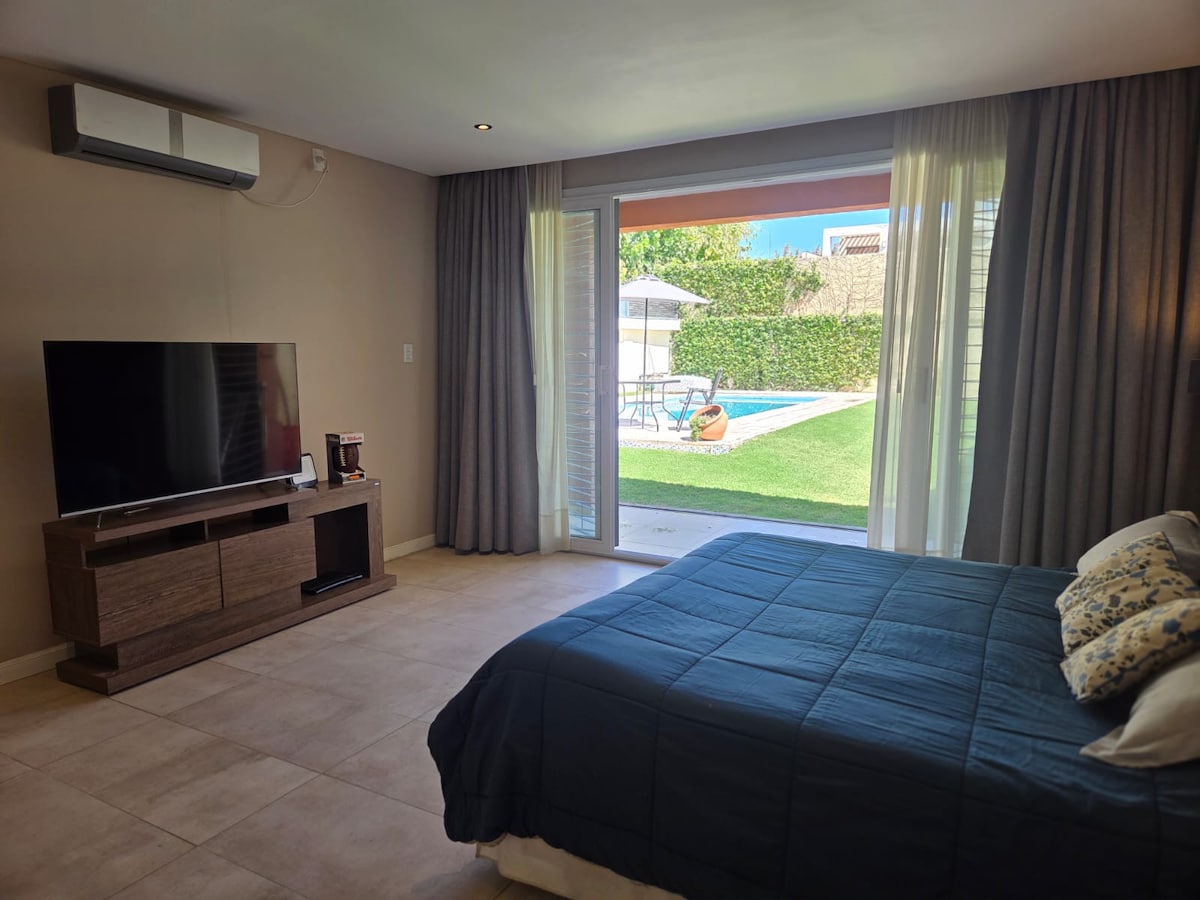Casa amplia de más de 200 m² en Rivadavia, San Juan, ubicada en zona residencial tranquila y exclusiva. Cuenta con 3 habitaciones, 2 baños, living comedor luminoso y cocina totalmente equipada. Pileta privada, parrillero y estacionamiento propio dentro de la propiedad. A solo 12 km del Dique de Ullum y cerca de circuitos de trekking y mountain bike. Ideal para familias o grupos que buscan comodidad, naturaleza y descanso.