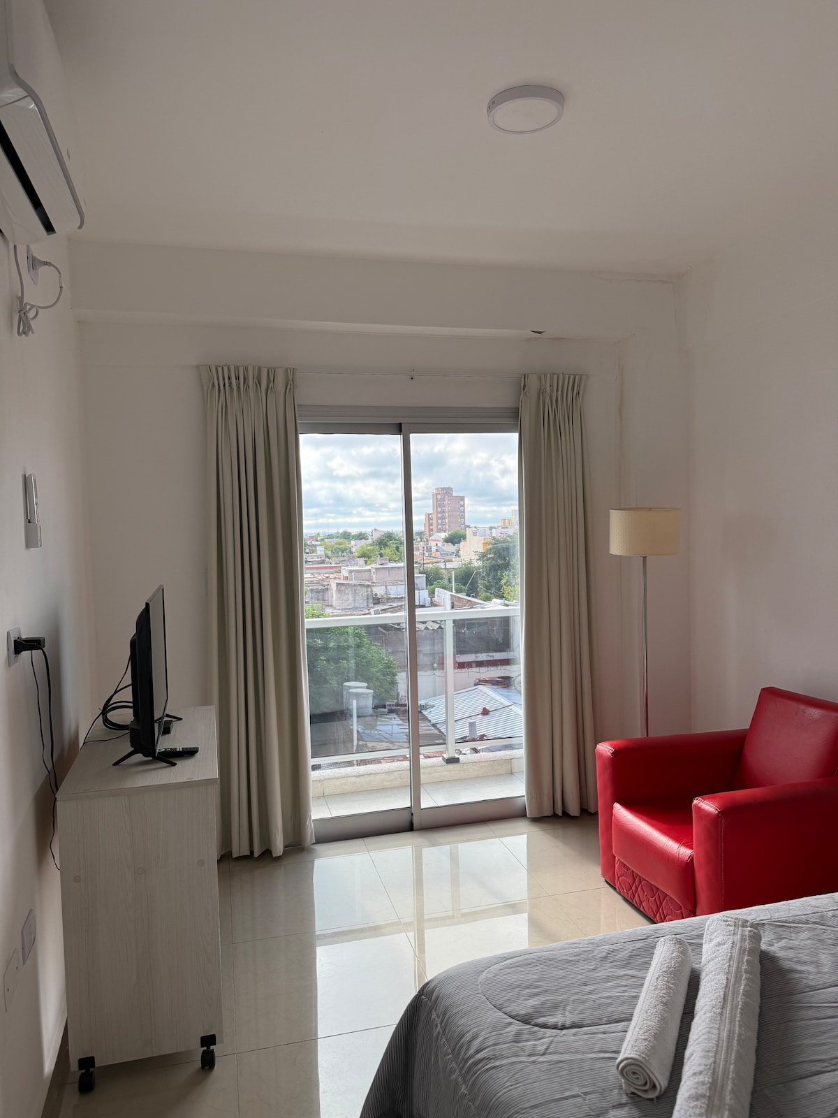 Excelente departamento céntrico de una habitación ! Con únicos detalles y servicio al nivel de Hotel boutique ! Incluye estacionamiento privado con portón eléctrico y salón con parrillero en caso de necesitarlo. Tiene un Balcón para disfrutar de los atardeceres sanjuaninos y es el sector único en caso de fumadores.