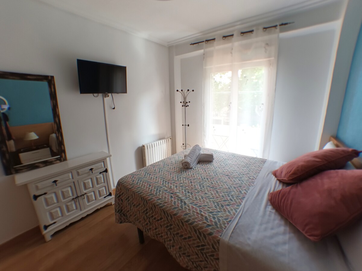 Dispone de una cama doble (matrimonio) con baño compartido. Todas las habitaciones disponen de Wifi, televisión, calefacción, enchufes al lado de la cama y sobre todo limpieza. Secador de pelo en todos los baños. Habitación equipada con: 1 cama doble (matrimonio) 1 mesilla de noche Espejo Televisión WiFi Escritorio Silla Armario Perchero Ventilador de techo Nevera Cajonera Tarima flotante Ropa de cama y toallas Mirador con zona de descanso