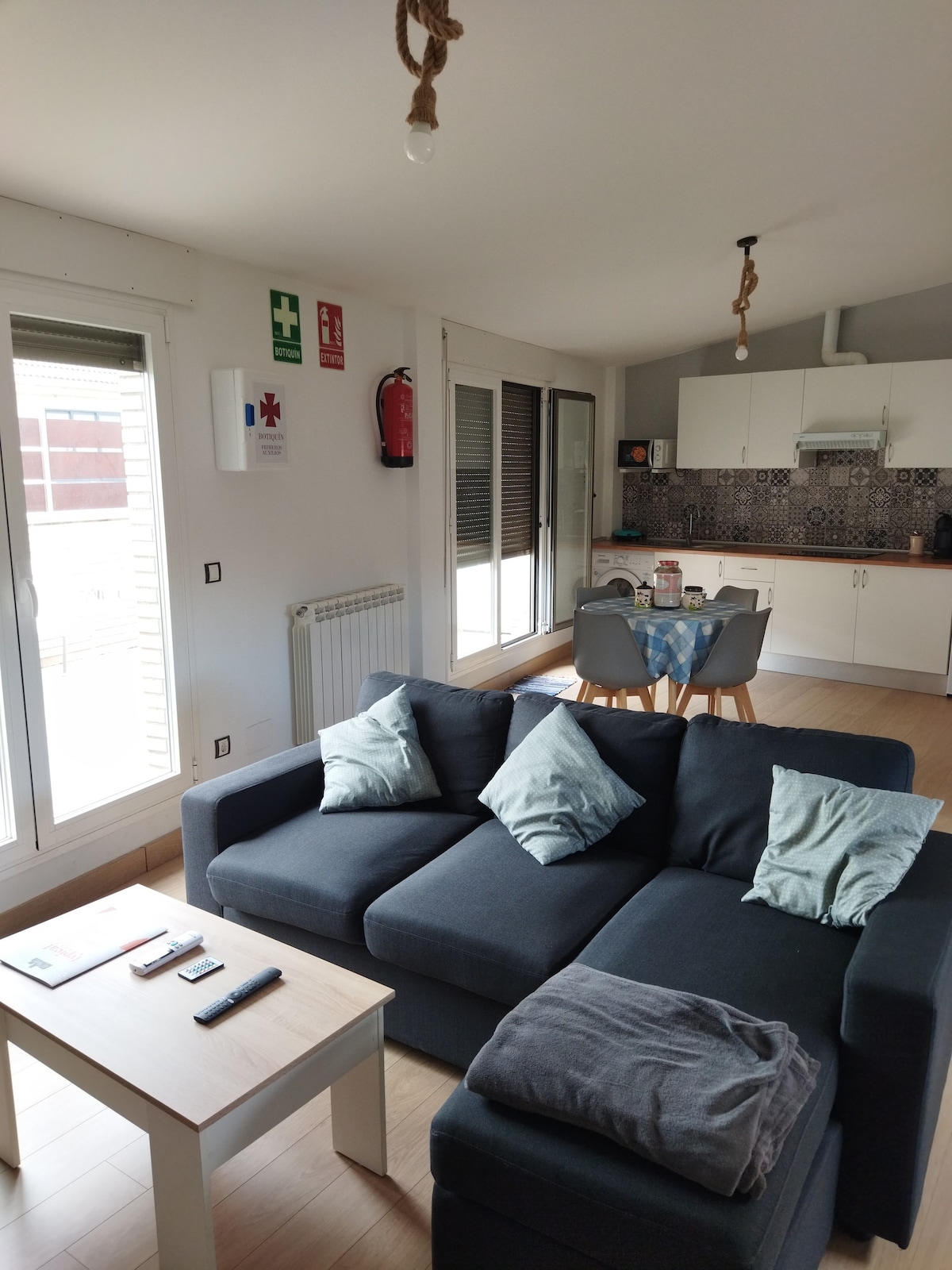 Loft de 70 metros, con un gran salón comedor con cocina montada , habitación con cama 150 y baño completo en el dormitorio , más un sofá cama muy cómodo de 120 cms. en el salon. Completamente nuevo en Mendavia, villa con 11 denominaciones de Origen. Cerca de de Logroño, Estella y Viana